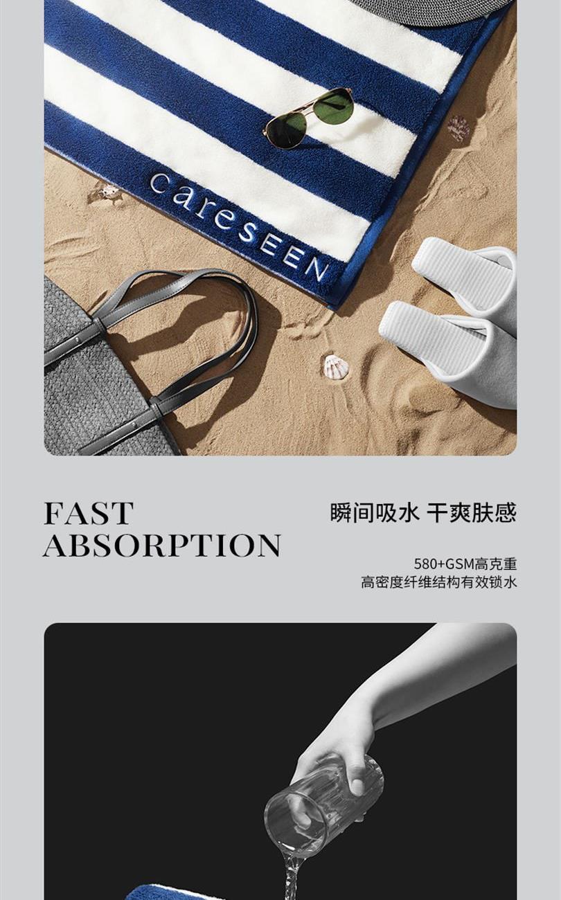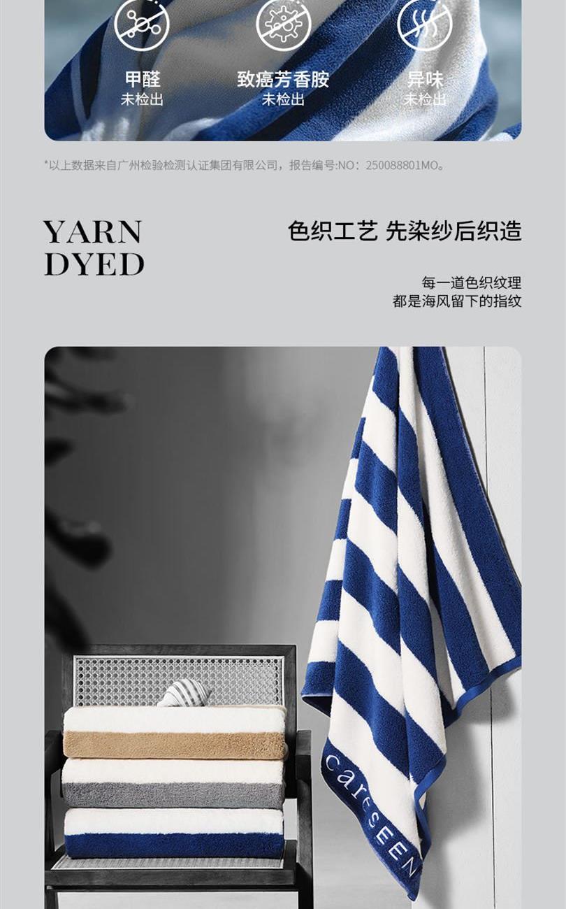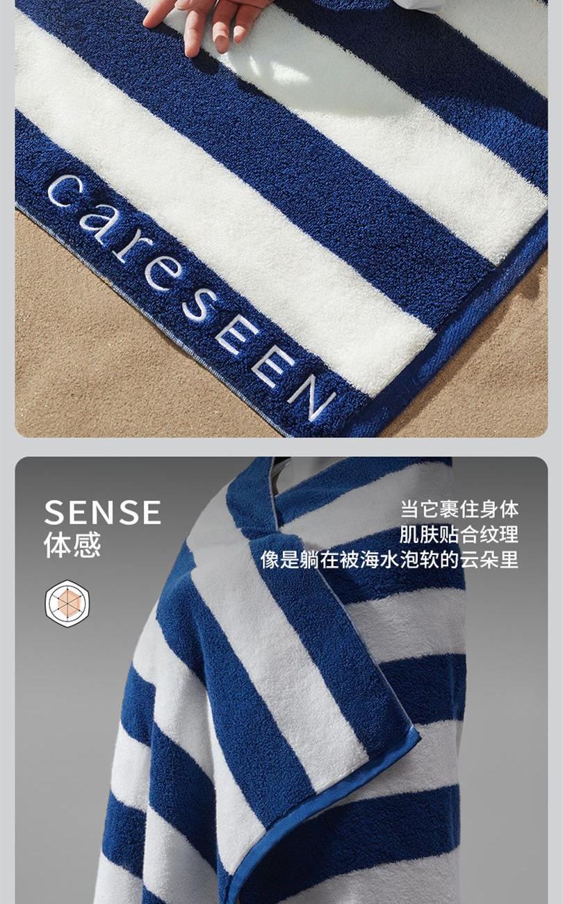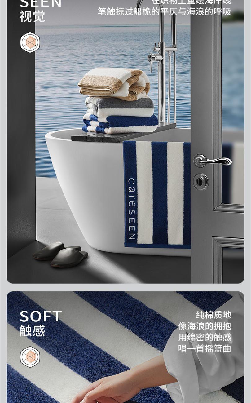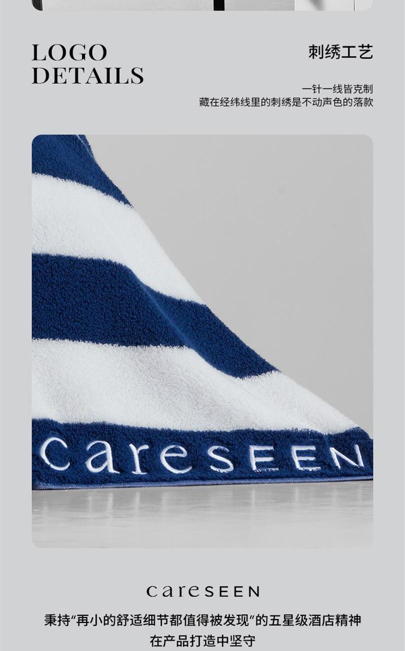 【产品面料】 纯棉 【产品颜色】海湾蓝/帆影灰 【产品规格】150*80cm/700g 【产品包装】careseen礼盒 瞬间吸水,580+GSM高克重,高密度纤维结构有效锁水 纯棉打造,从原料到面料严格把关。 安全健康,A类母婴级标准,更加安全放心使用