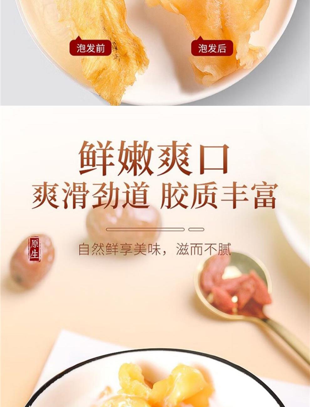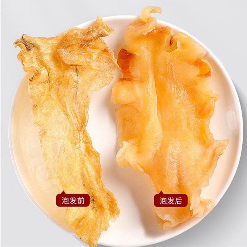 深海源头选材,低温风干锁鲜,无腥纯净; 胶体纹理密实带自然花纹,高泡发率易处理; 炖煮后软糯弹滑,奶香浓郁,适配甜咸多类料理; 富含优质胶原蛋白与氨基酸,低脂温和易吸收。
