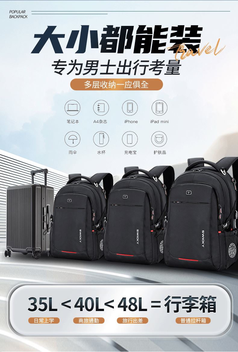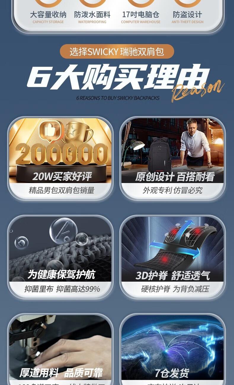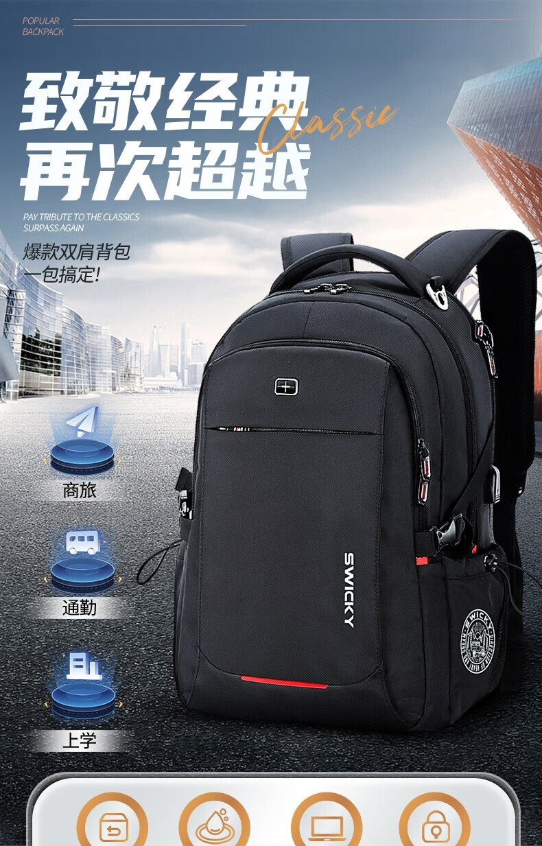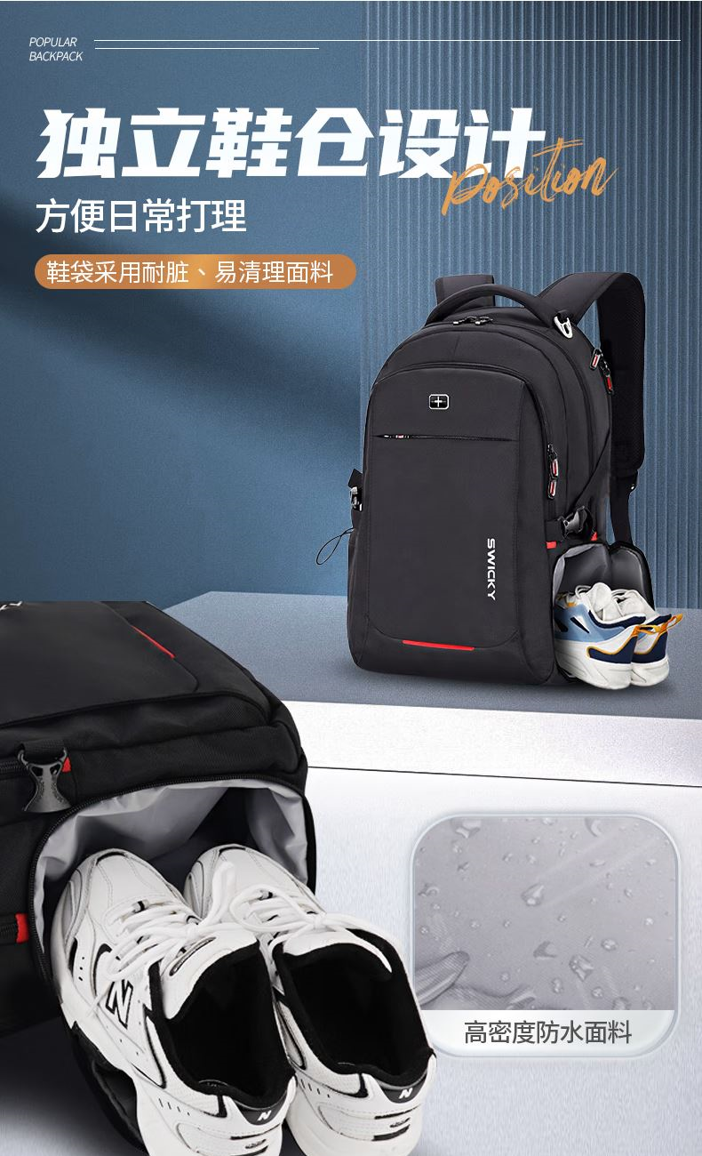 SWICKY瑞驰休闲商务双肩包81669(鞋仓+防盗款)
