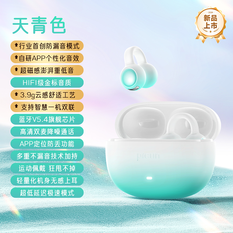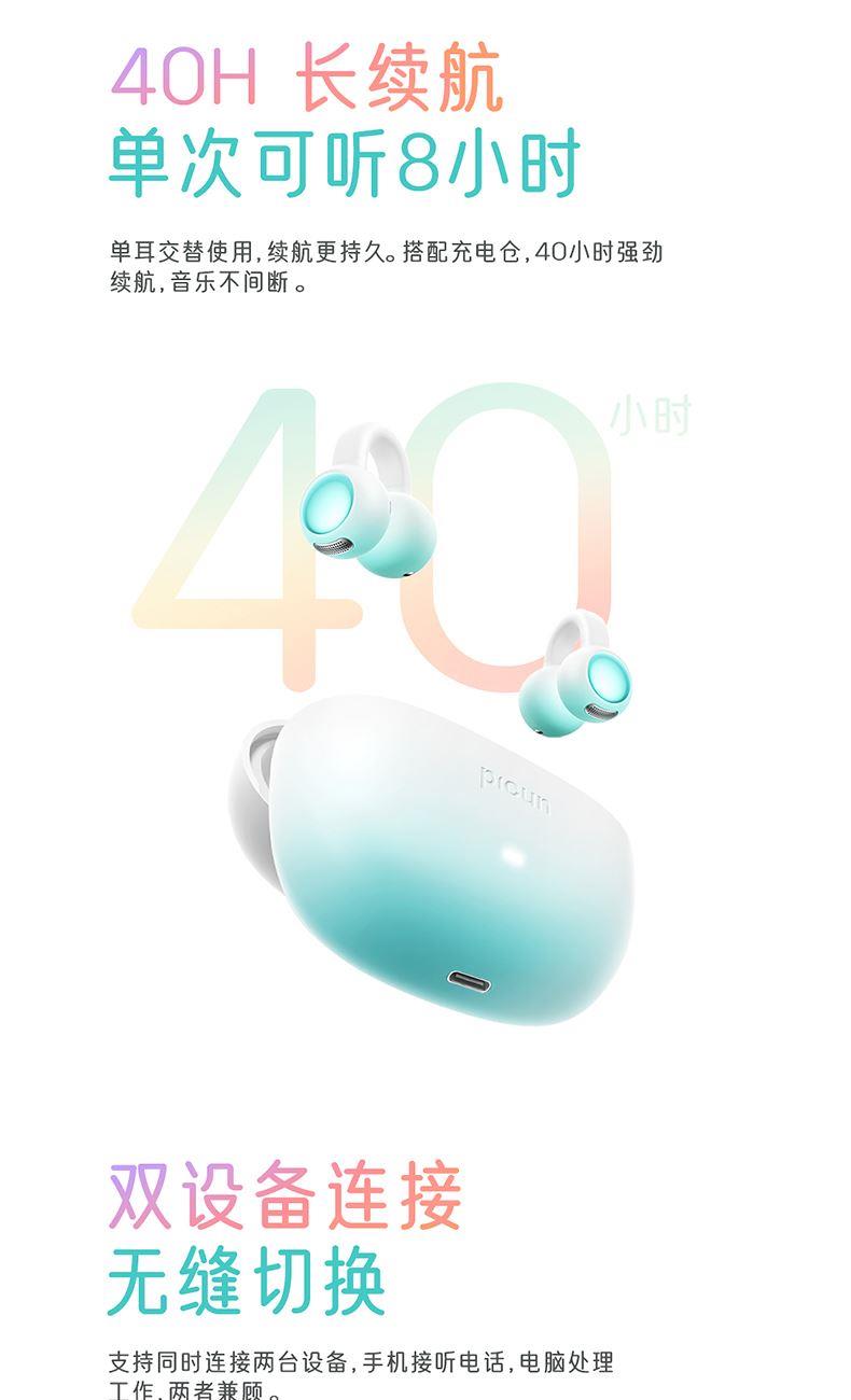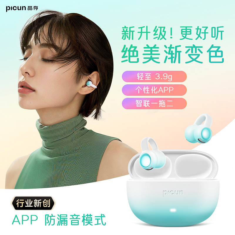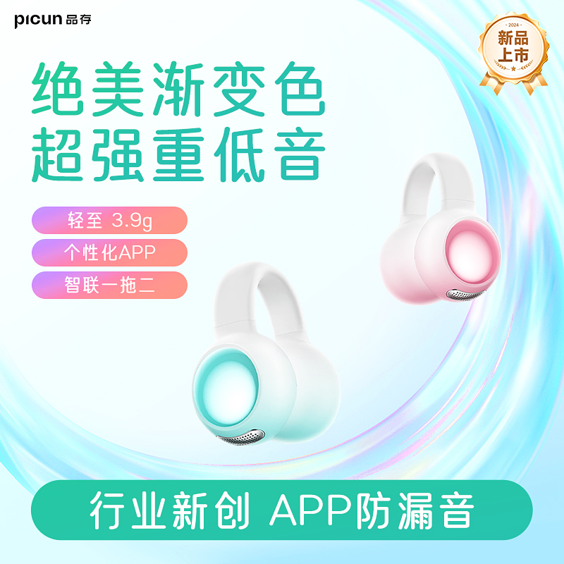 蓝牙方案 : JL6973 蓝牙版本 : V6.0 接受距离 : 10m 频响范围 : 20HZ- 20KHZ 电池容量: 28mA /250mA 使用时间(70%音量:≈4h 喇叭尺寸 : 13mm 喇叭灵敏度: 100±3db 1、支持【picun品存】APP智能互联控制 2、轻盈小巧,单只 3.9 克 3、软弹耳夹,久戴也舒适 4、澎湃音质,重低音出色
