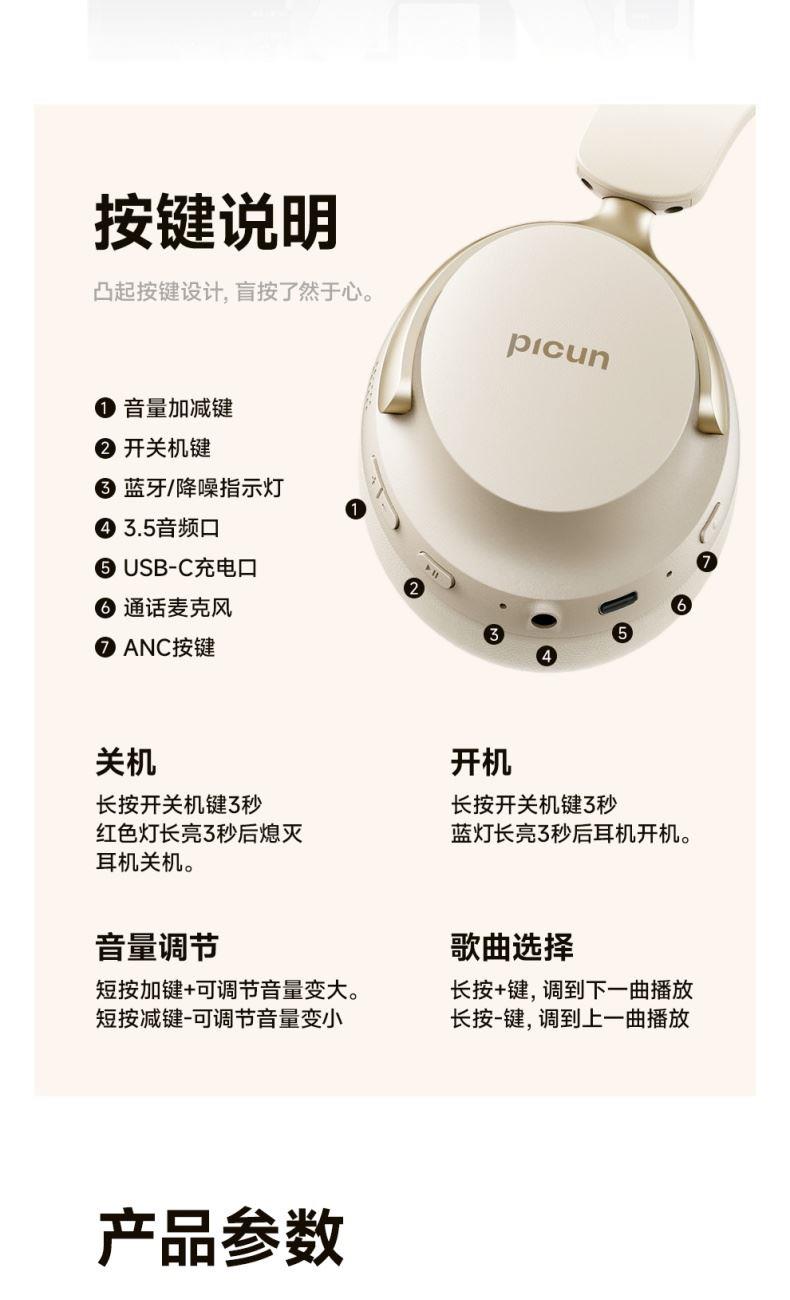 picun品存头戴式耳机NC60Pro复古棕
