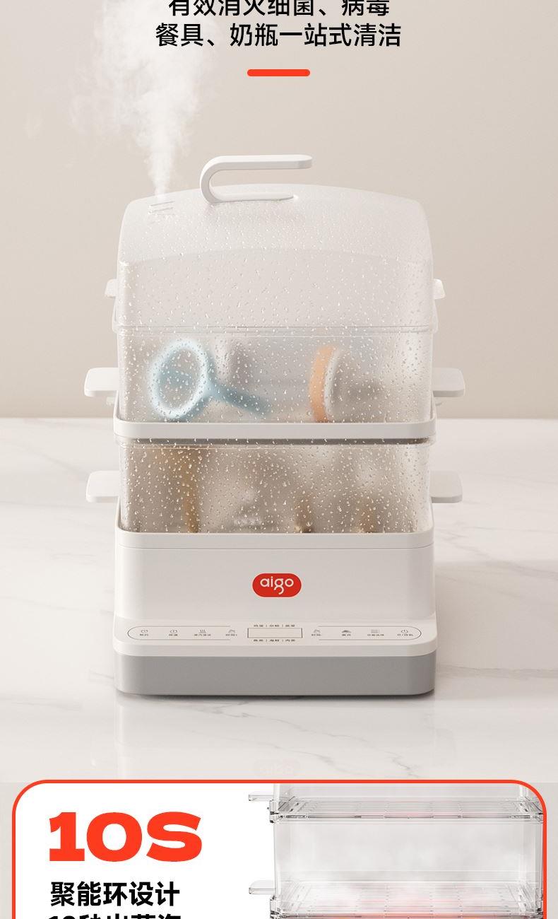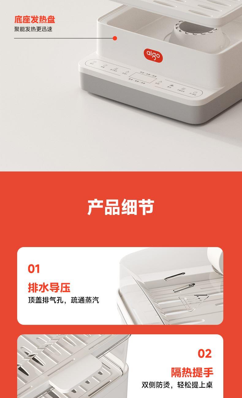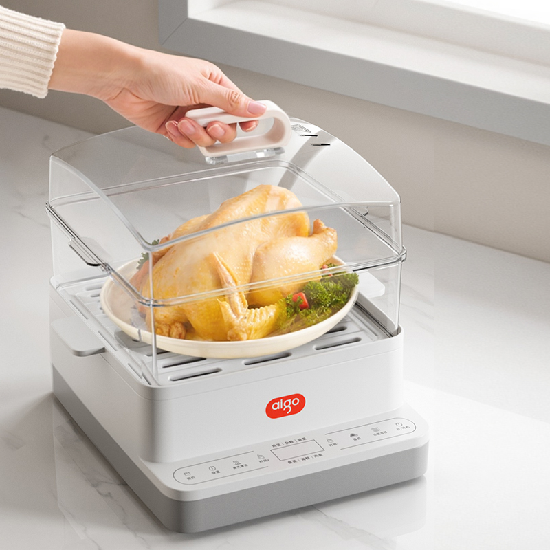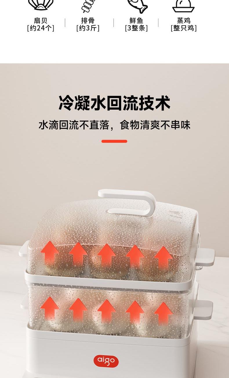 18L大容量,满足全家蒸煮需要 三层空间自由分配,满足更多烹饪需求 800W大功率立体蒸汽环流,均匀加热加热食材,呵护您的用餐安全 多种面板功能选择,预约、保温、定时、消毒样样精通 蒸汽除 菌功能,可对餐具高温消毒,让您吃得更安心、更放心 分体式设计,让清洁更简单 额定电压:220V 额定功率:800W 容量:18L 产品净含量:2.48kg 产品尺寸:306mm*308mm*410mm