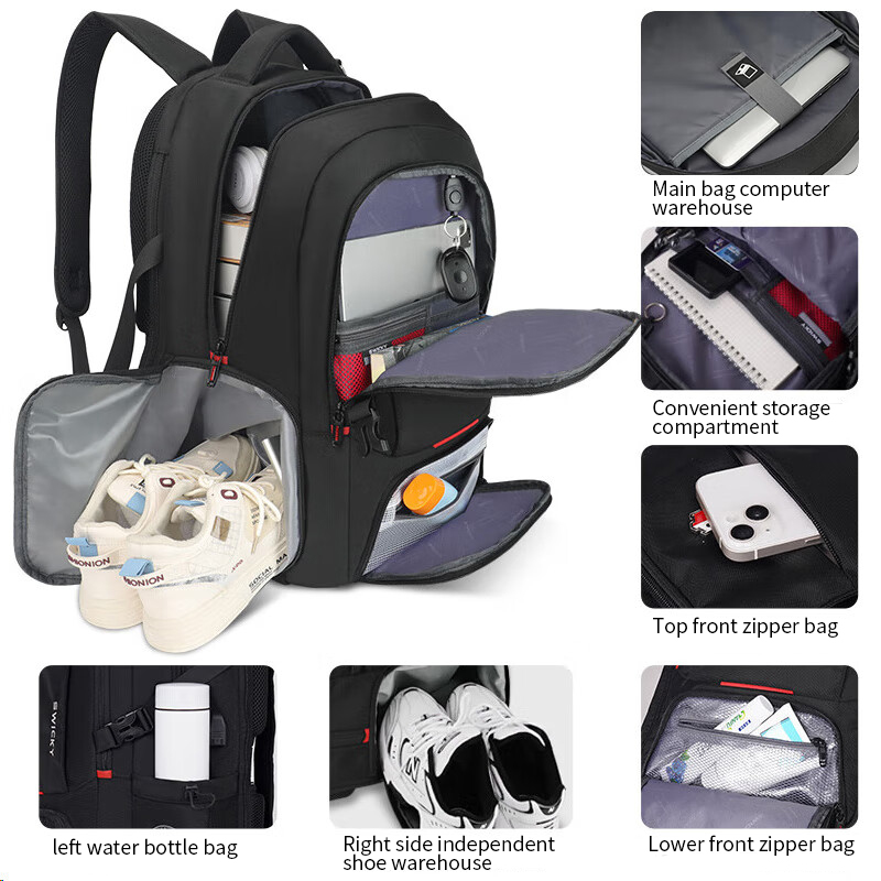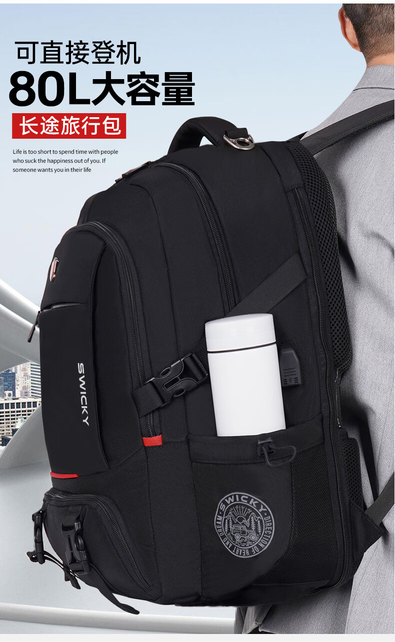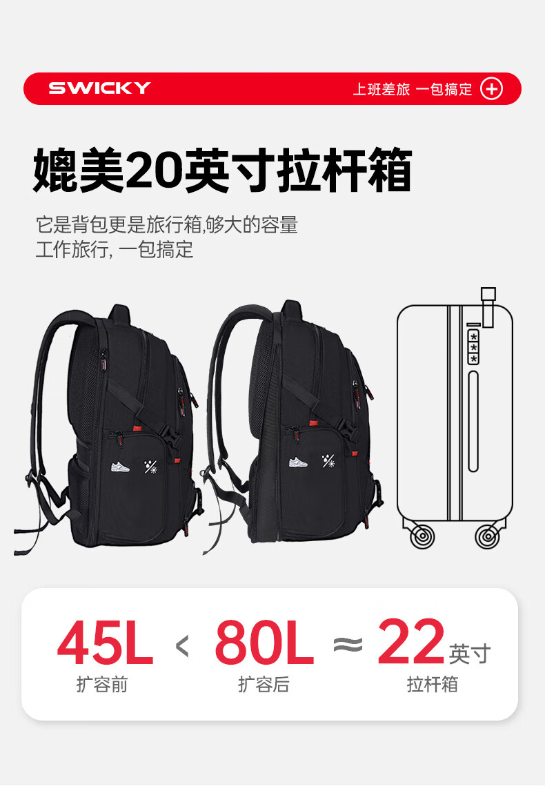 SWICKY双肩包88179黑色80L带鞋仓+干湿分离黑色