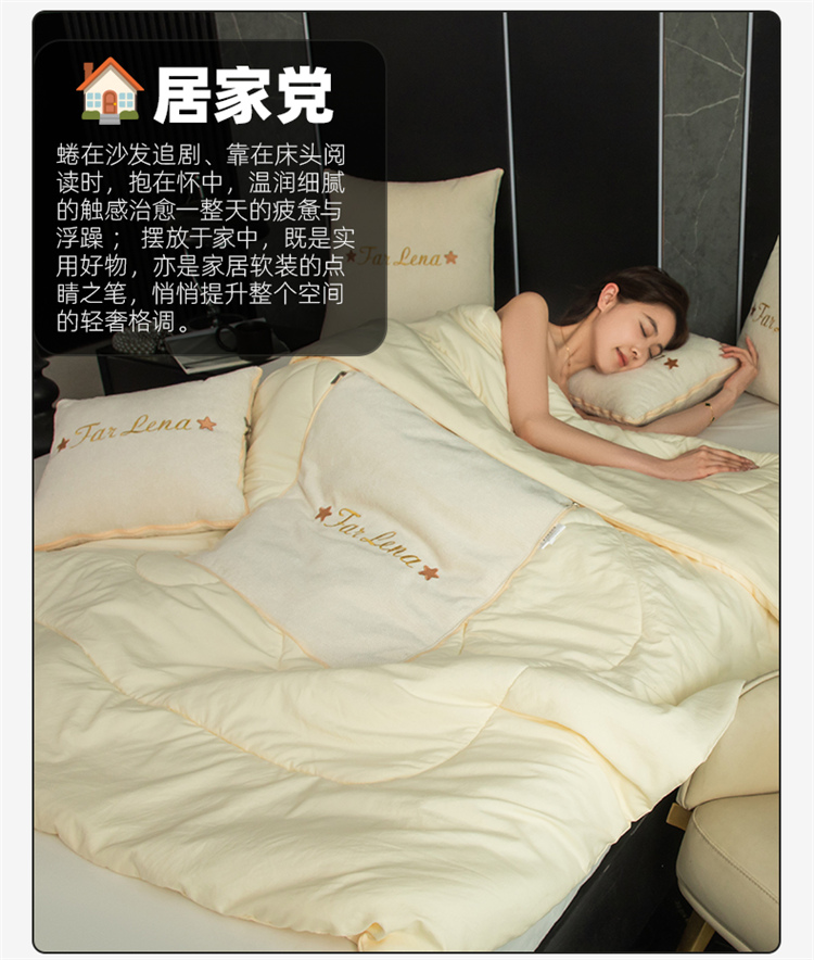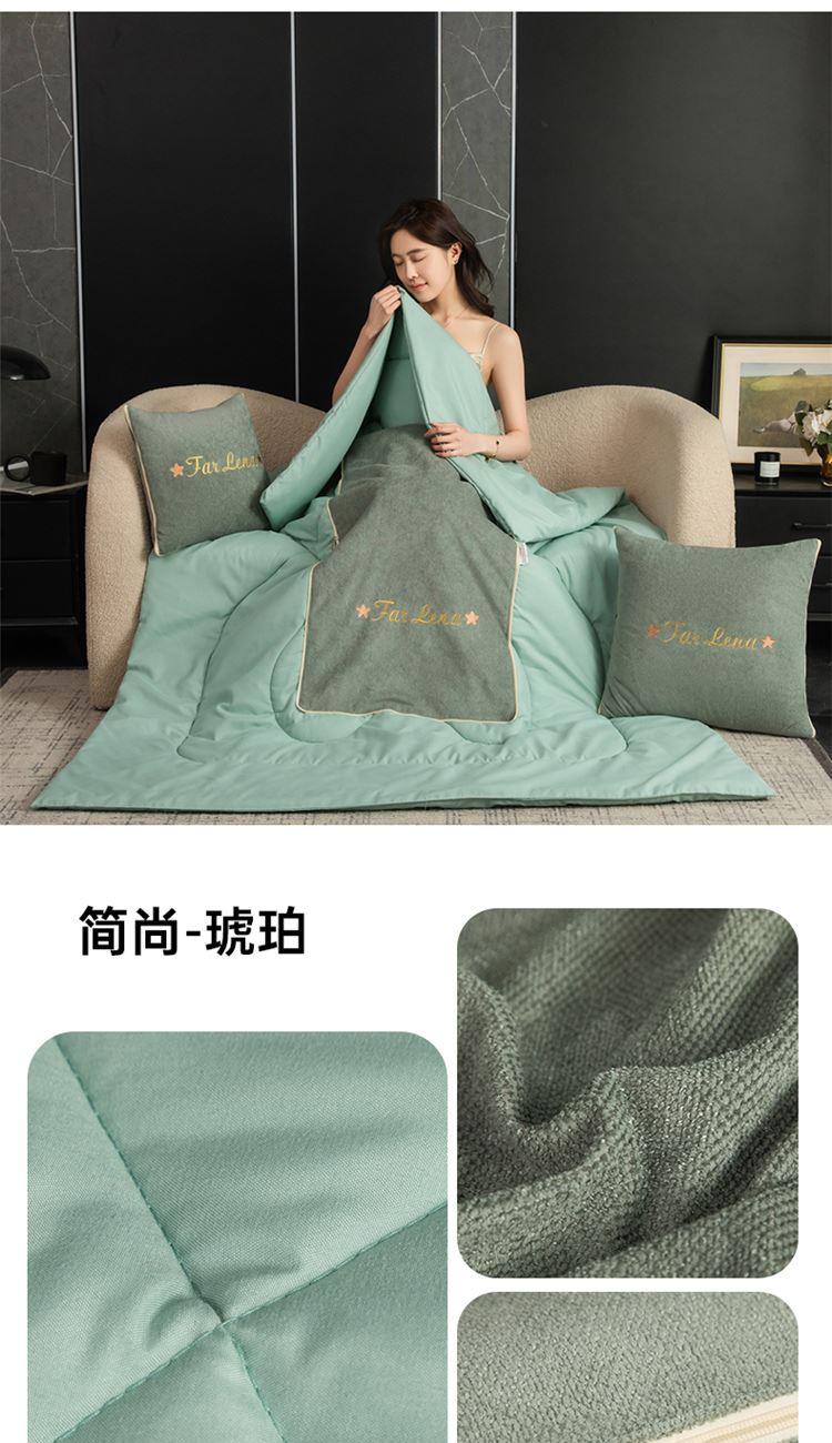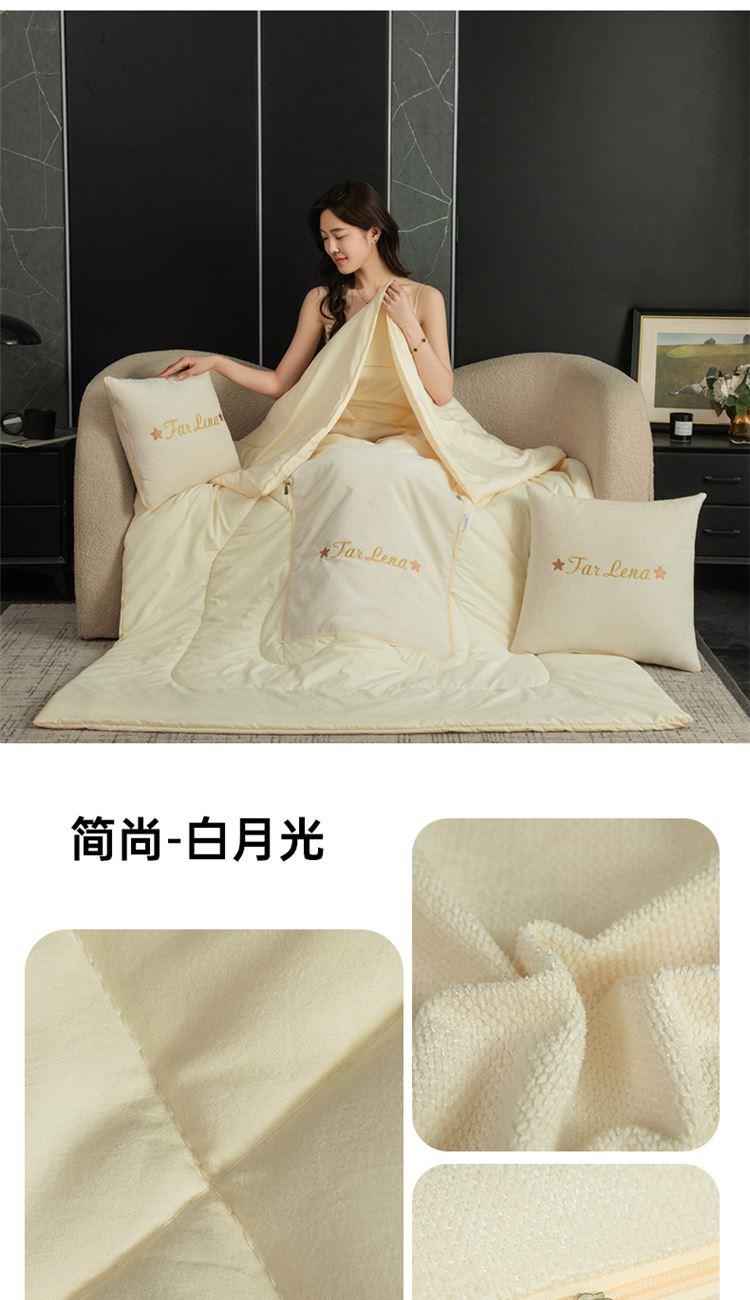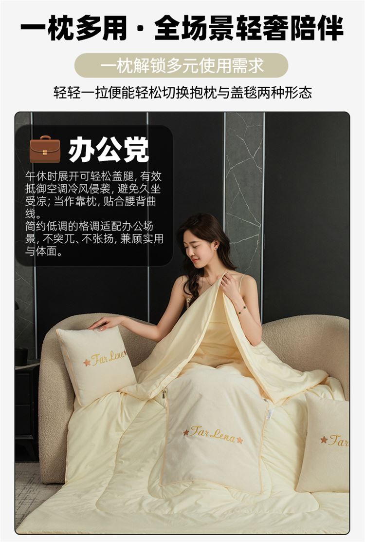 本品采用活力优质雪尼尔面料+高密度水洗磨毛面料制作而成 !独特的Far Lena 精品刺绣工艺,彰显品质|颜值与实用双在线! 一枕多用,场景全覆盖 抱枕+被子二合一,隐藏拉链设计,秒变舒适小被子。 午休盖腿、靠腰护颈,告别空调冷意。沙发追剧、床头靠卧,柔软包裹感拉满。车载应急、差旅便携,折叠后小巧不占空间。 一个顶俩,性价比超高,解决多场景需求! 表面面料:雪尼尔 被子面料:水洗磨毛 尺寸:40*40cm 打开105*150cm