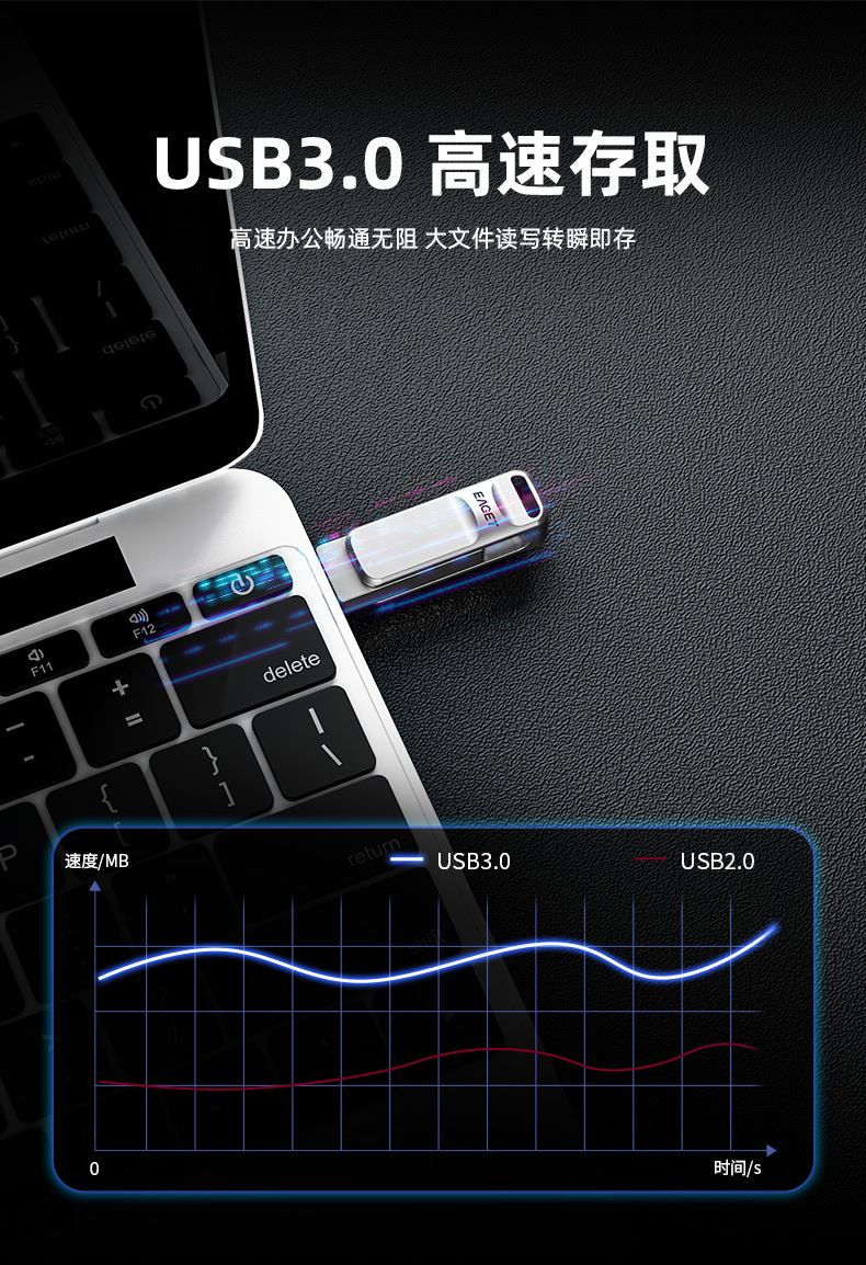 Type-C/USB3.0双接口 全金属设计,质感超群 双头设计,支持USB/TYPE-C传输 小巧便携,360°随心旋转 原装A+级芯片,品质稳定 支持定制,满足个性化需求 产品尺寸:66*15.7*12.7mm 包装尺寸:113*100*10mm 单品重量:22g