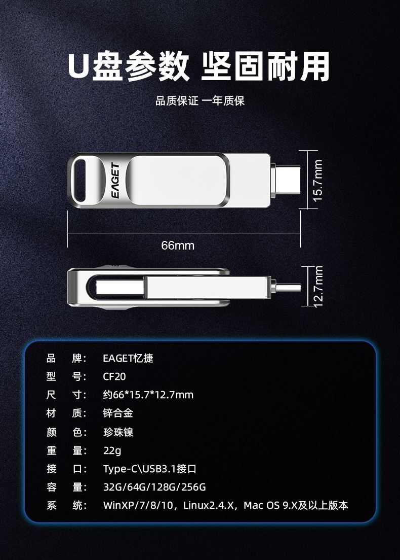 (EAGET)忆捷CF20双接口手机电脑多用优盘256GB