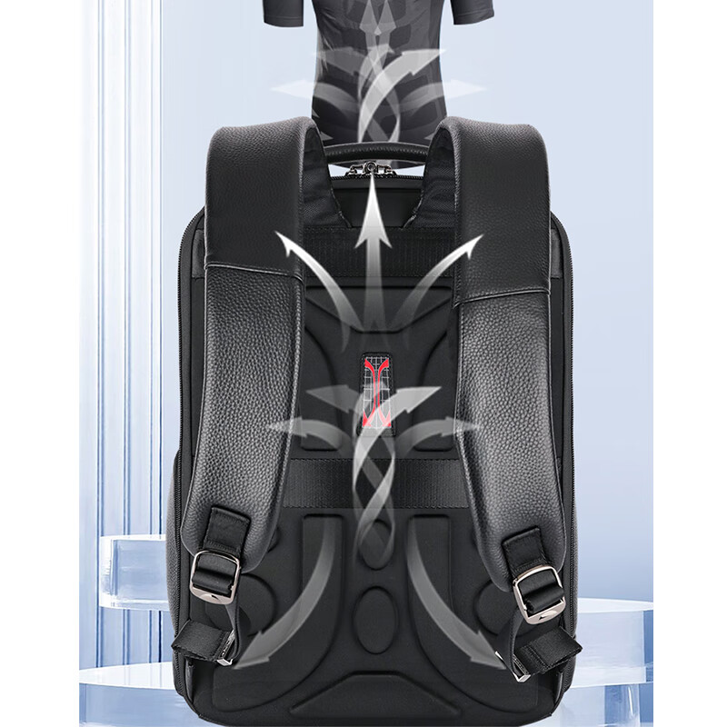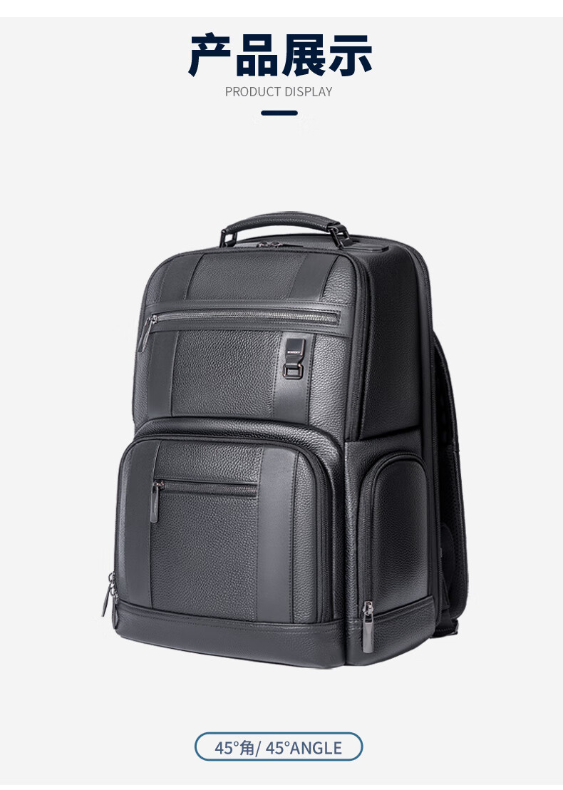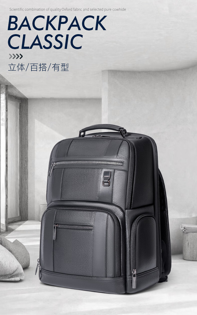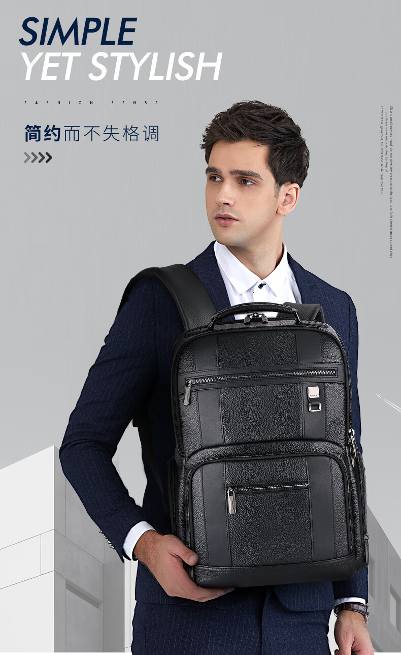 型 号sw-88131 尺 寸: 320*220*410mm 材 质:皮革 颜 色:黑色 重 量:1.2kg 双肩背包:大容量双仓,多功能科学分区系统,质感金属挂扣,可挂钥匙或军刀等小物件。轻奢格调,奢华质感·匠心之作。