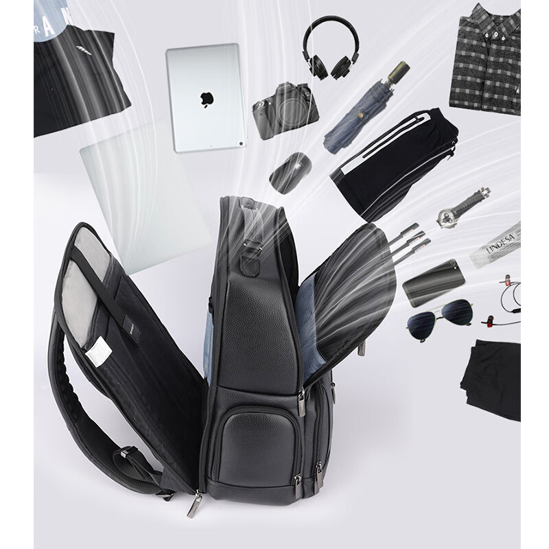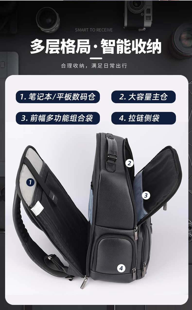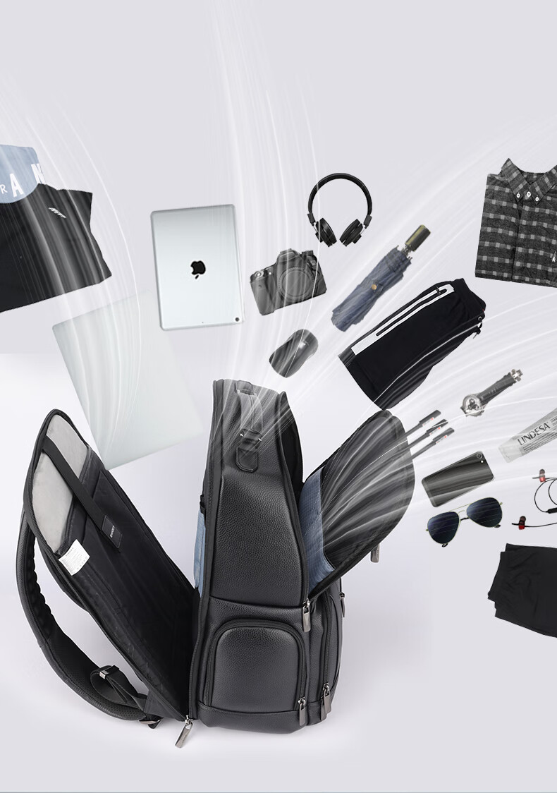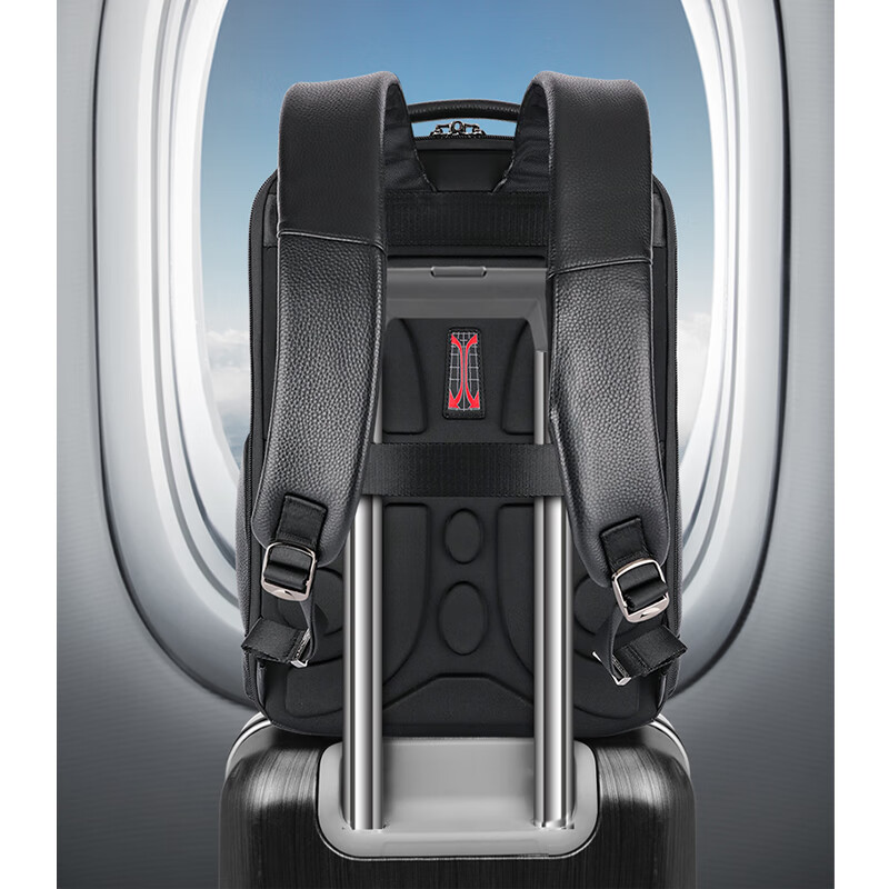 型 号sw-88131 尺 寸: 320*220*410mm 材 质:皮革 颜 色:黑色 重 量:1.2kg 双肩背包:大容量双仓,多功能科学分区系统,质感金属挂扣,可挂钥匙或军刀等小物件。轻奢格调,奢华质感·匠心之作。