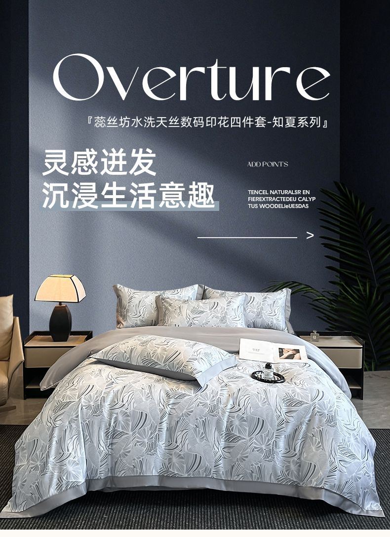 蕊丝坊家纺水洗天丝数码印花四件套-知夏系列