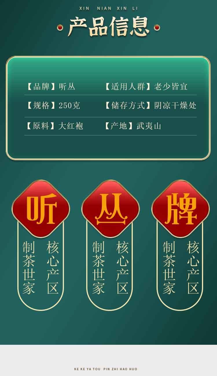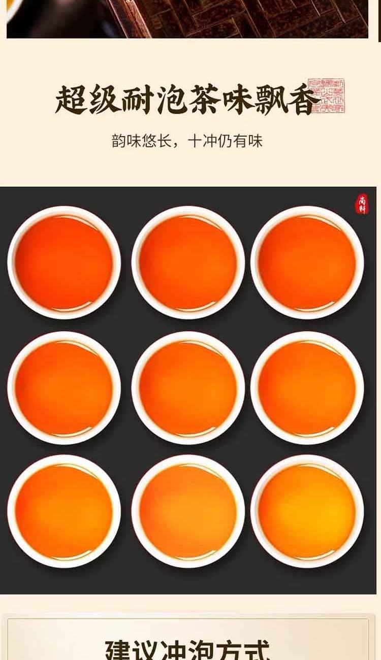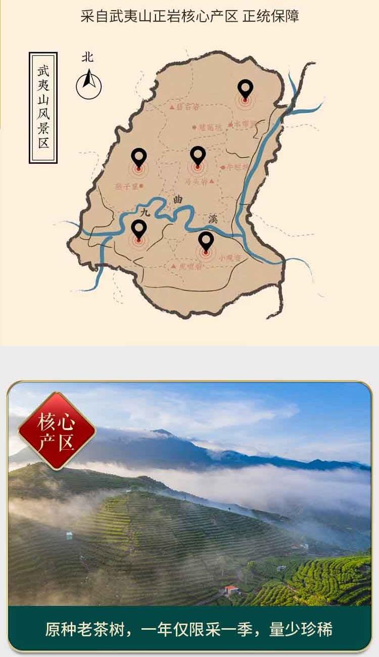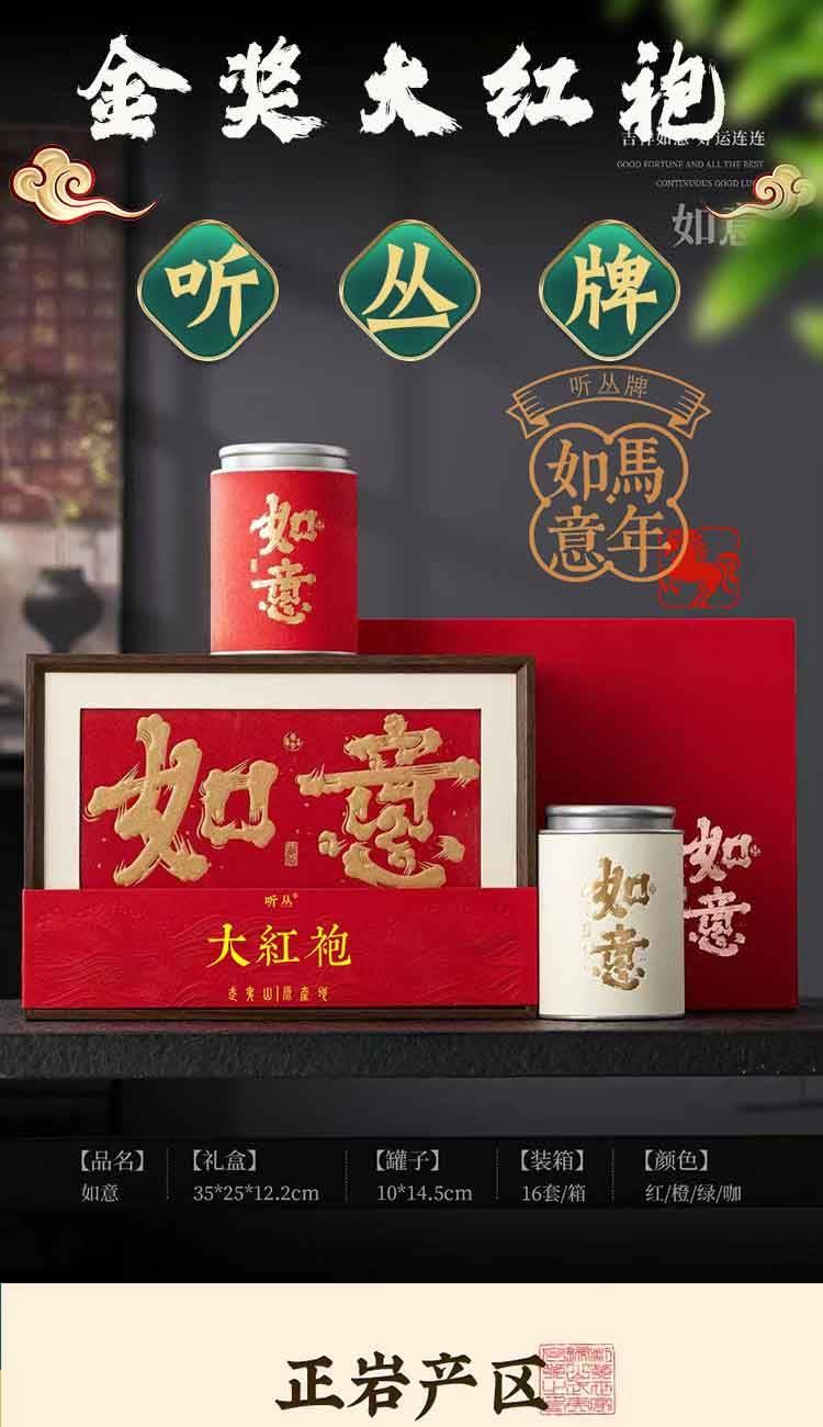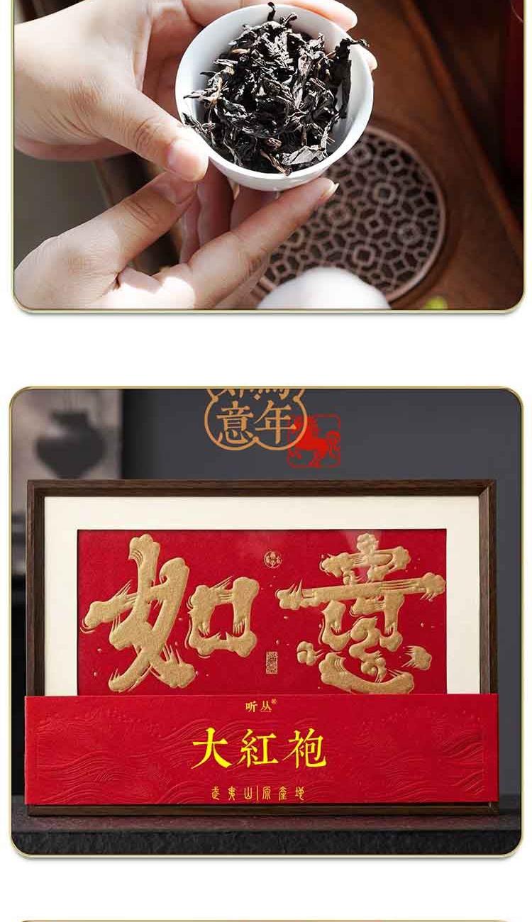 【茶名】:大红袍 【重量】:250g 【配件】:铁罐+礼盒+手提袋 【口味】:清香型 【产地】:福建·武夷山 外形:紧结、壮实、稍扭曲。 色泽:带宝色或油润;整碎:匀整。 香气:锐、浓长或幽、清远; 滋味:岩韵明显,固味甘爽,杯底有香气。 汤色:清澈、艳丽、呈深橙黄色。