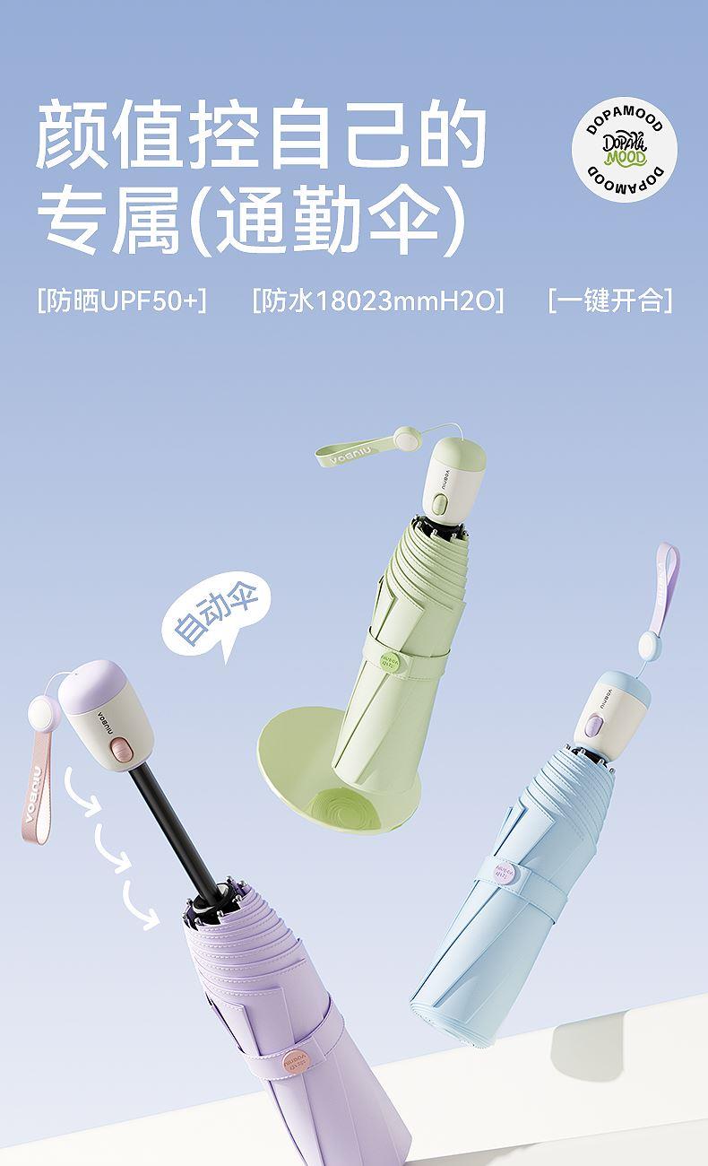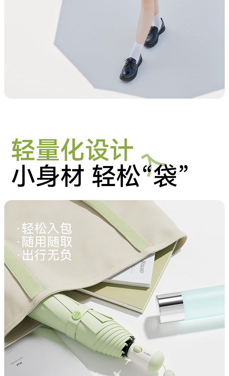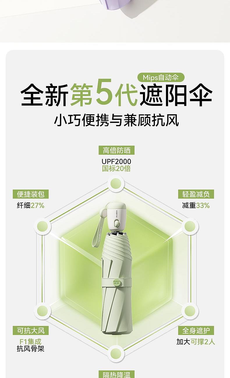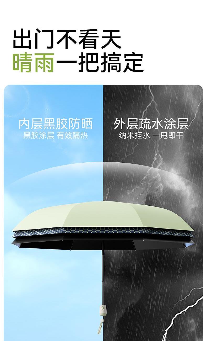 商品货号:ZD2572 伞架材质:铝合金,玻纤 伞面材质:210T全遮光黑胶 款式:自动三折8骨安全式 商品参数:伞下直径:98cm 高度:55cm 收拢宽度径:5cm 收拢高度:27cm 商品毛重:360克 商品颜色: ZD2572-米白色 ZD2572-珊瑚粉 ZD2572-星空黑 ZD2572-柠檬黄 ZD2572-碎冰蓝 ZD2572-浅草绿 ZD2572-冷雾紫