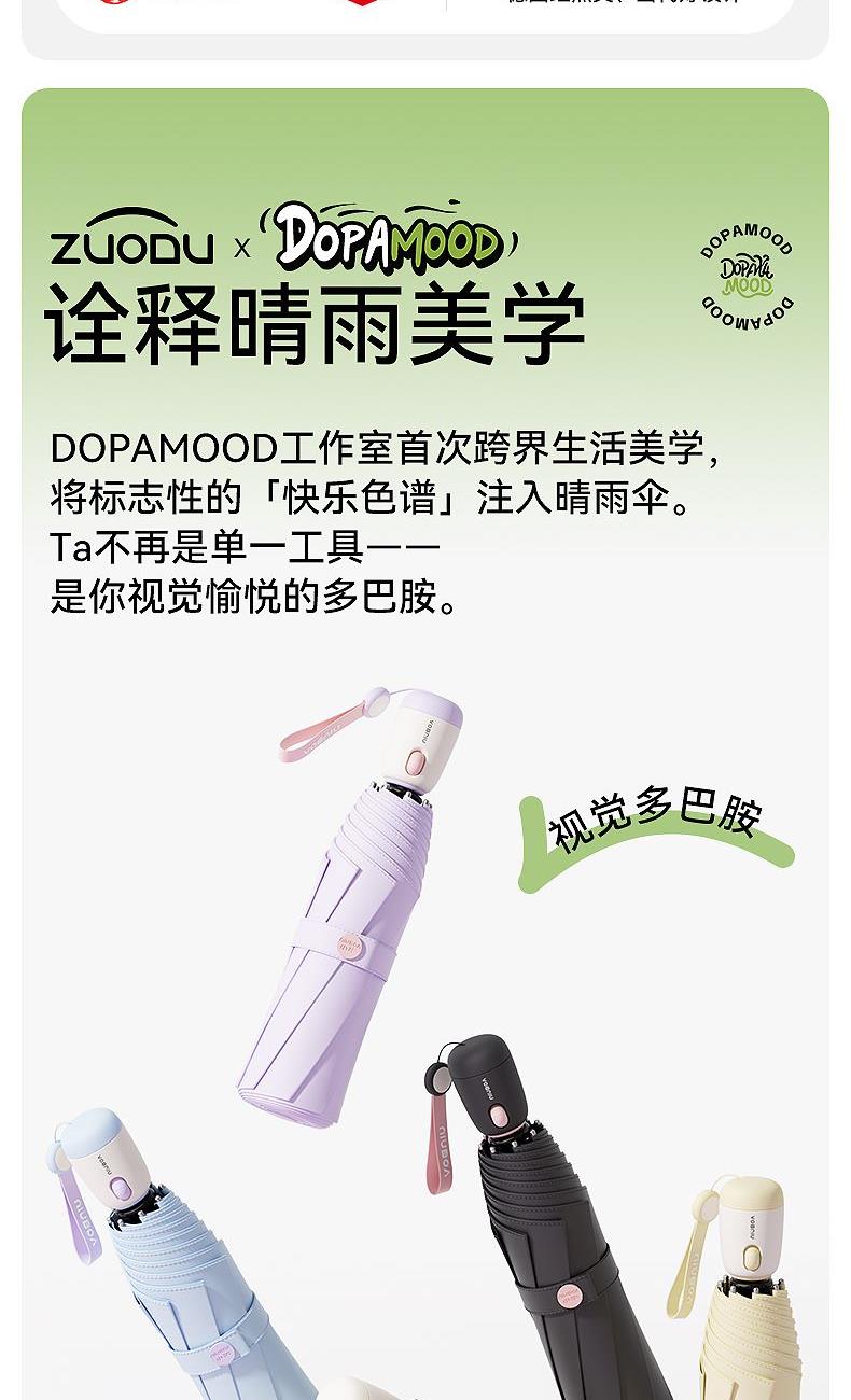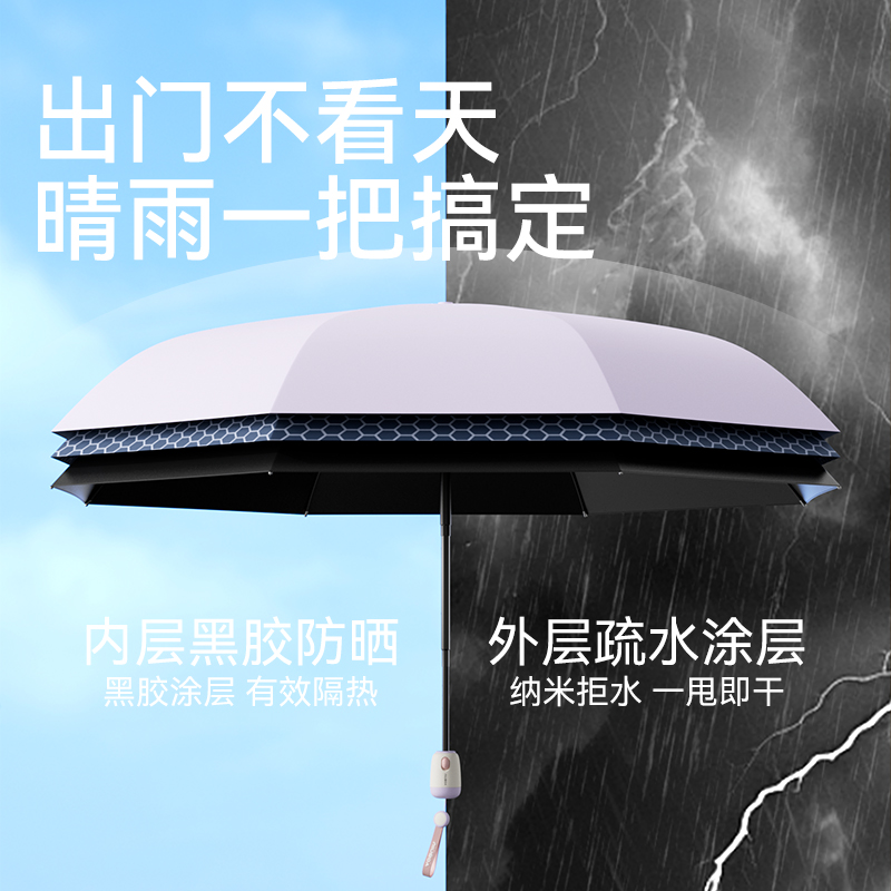 左都ZD2565蛋仔自动三折节节收8K黑胶防晒遮阳伞
