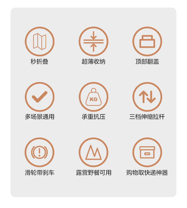多场景适用:商场购物,户外野餐,车载出行,搬运重物,临时座椅,休闲钓鱼,摆地摊,拉快递…