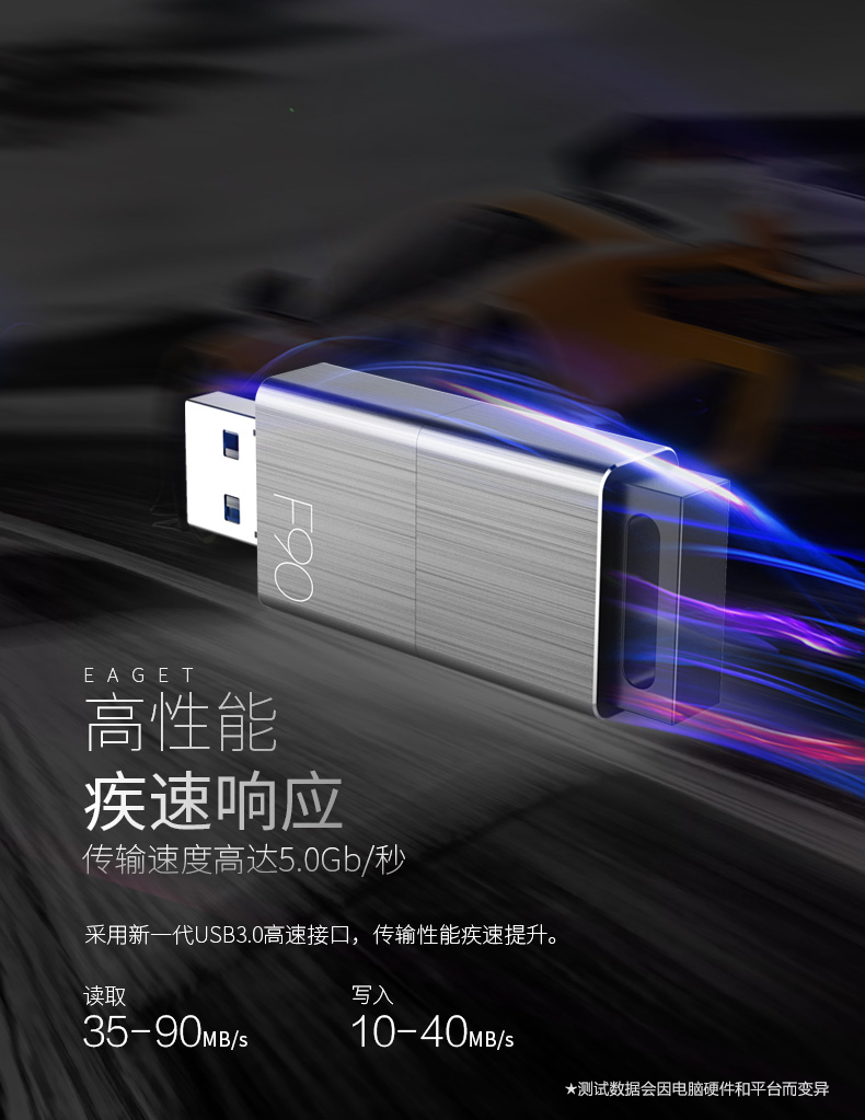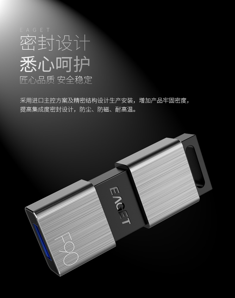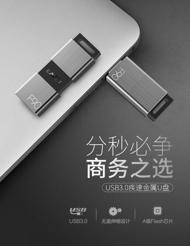 (EAGET)忆捷高速金属推拉式车载商务优盘F90-256G