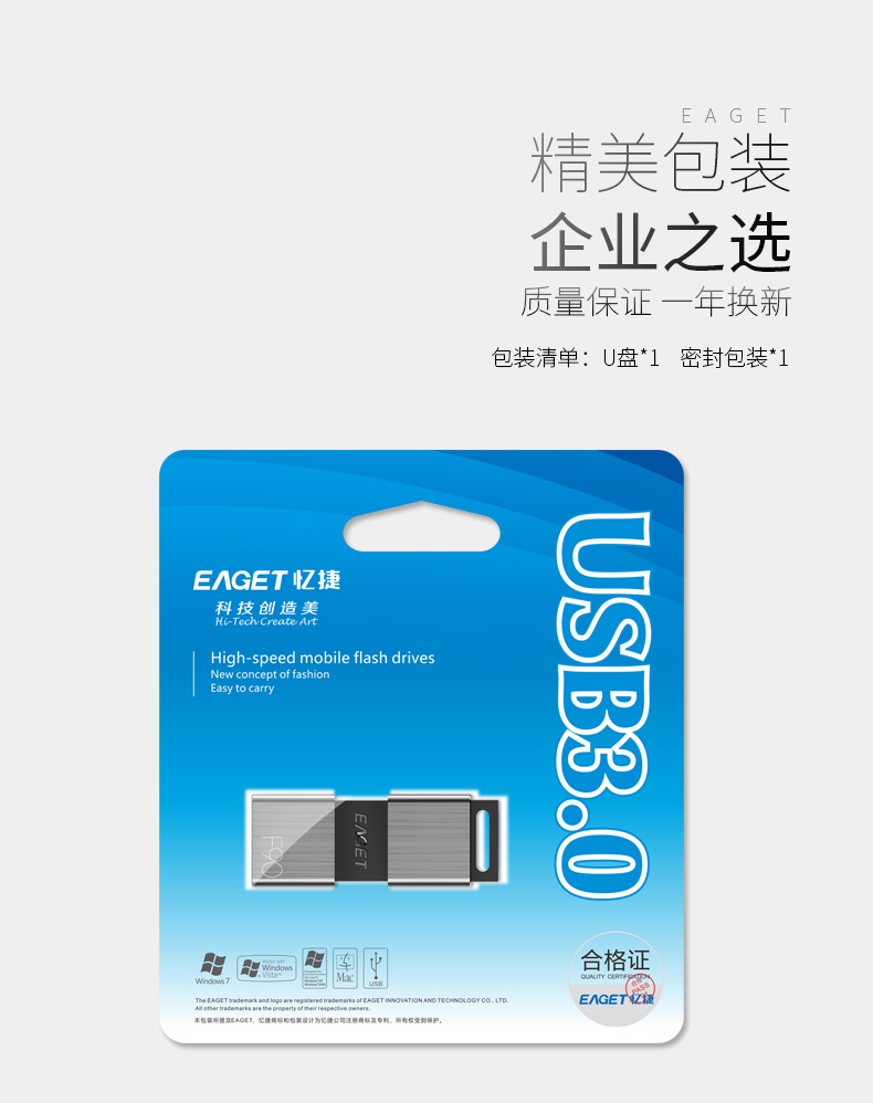 USB3.0接口 全金属设计,质感超群 3.0高速传输,超强兼容 小巧便携,推拉设计使用方便 原装A+级芯片,品质稳定 支持定制,满足个性化需求 产品尺寸:55.9*21.5*9.8m 包装尺寸:11.3*9cm 单品重量:10.8g