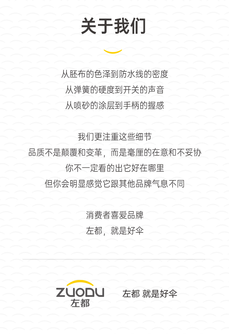 商品货号:ZD134 伞架材质:玻纤 伞面材质:300T抨击布 款式:半自动 商品参数:直径:125cm 高度:95cm 收拢直径:5cm 收拢高度:95cm 商品毛重:560克 商品颜色:ZD134-CBS-米 ZD134-CBS-黑金 ZD134-CBS-蓝 ZD134-CBS-黑银 ZD134-CBS-灰 商品包装:本布伞套