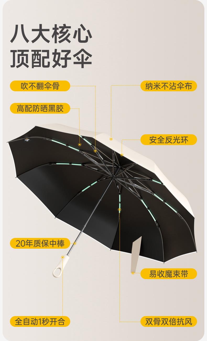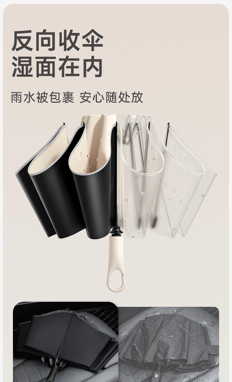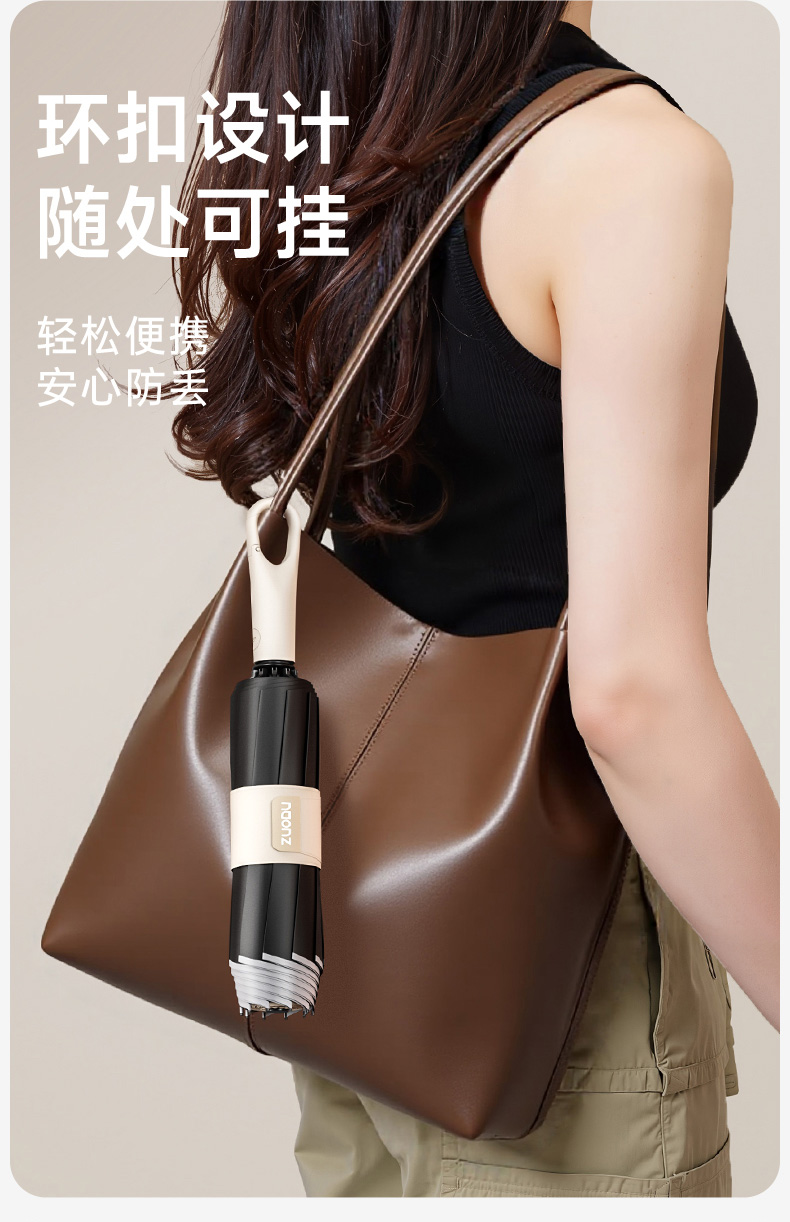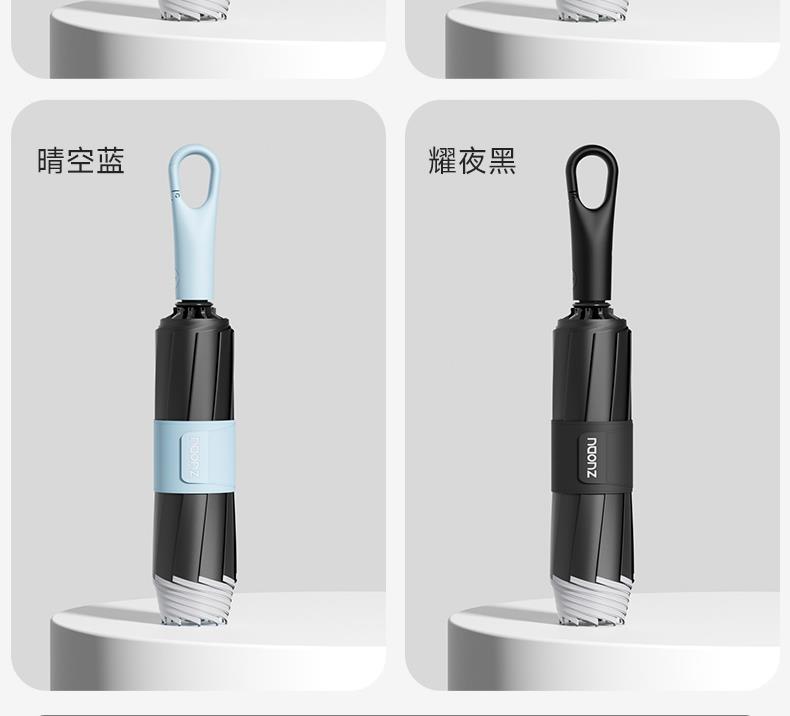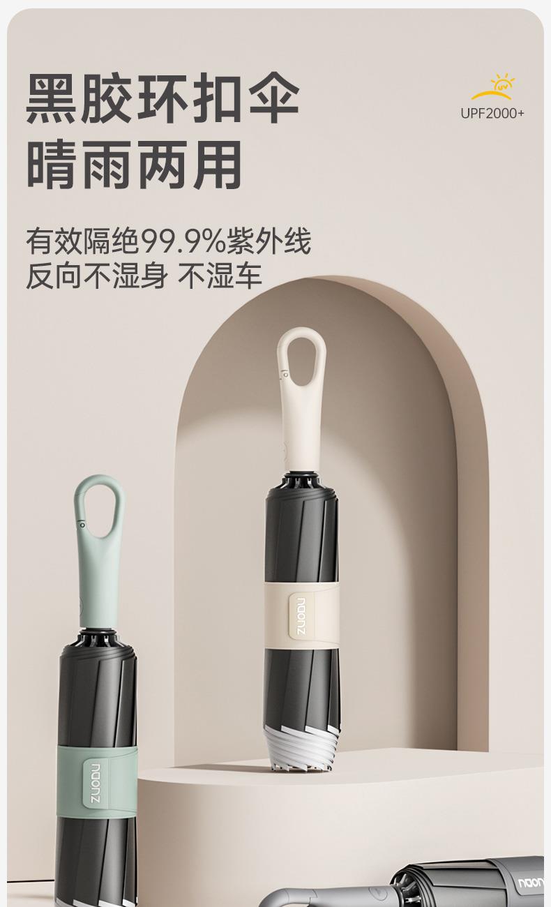 左都ZD230-小环扣反向双龙骨黑架子【黑胶】防晒自动伞
