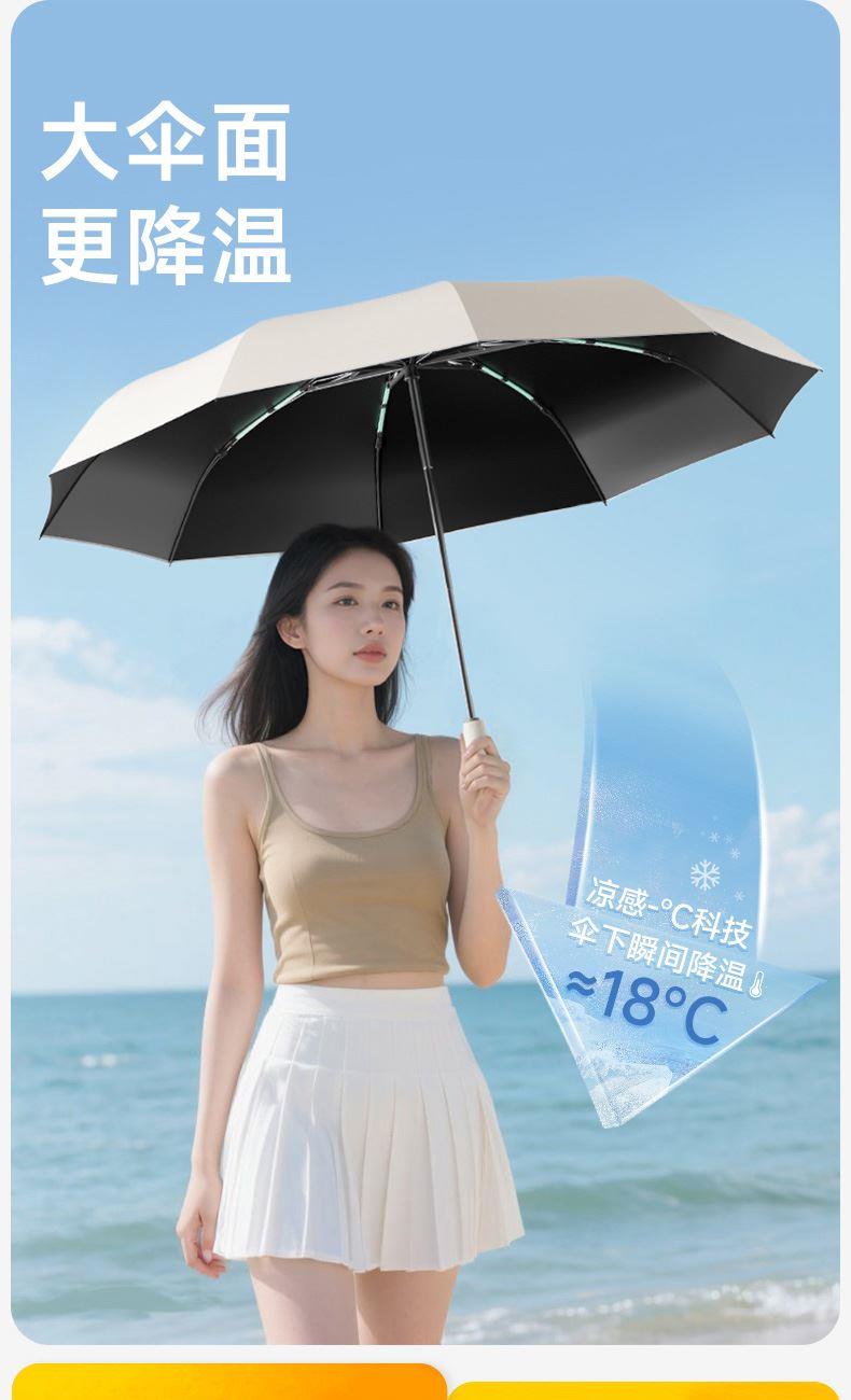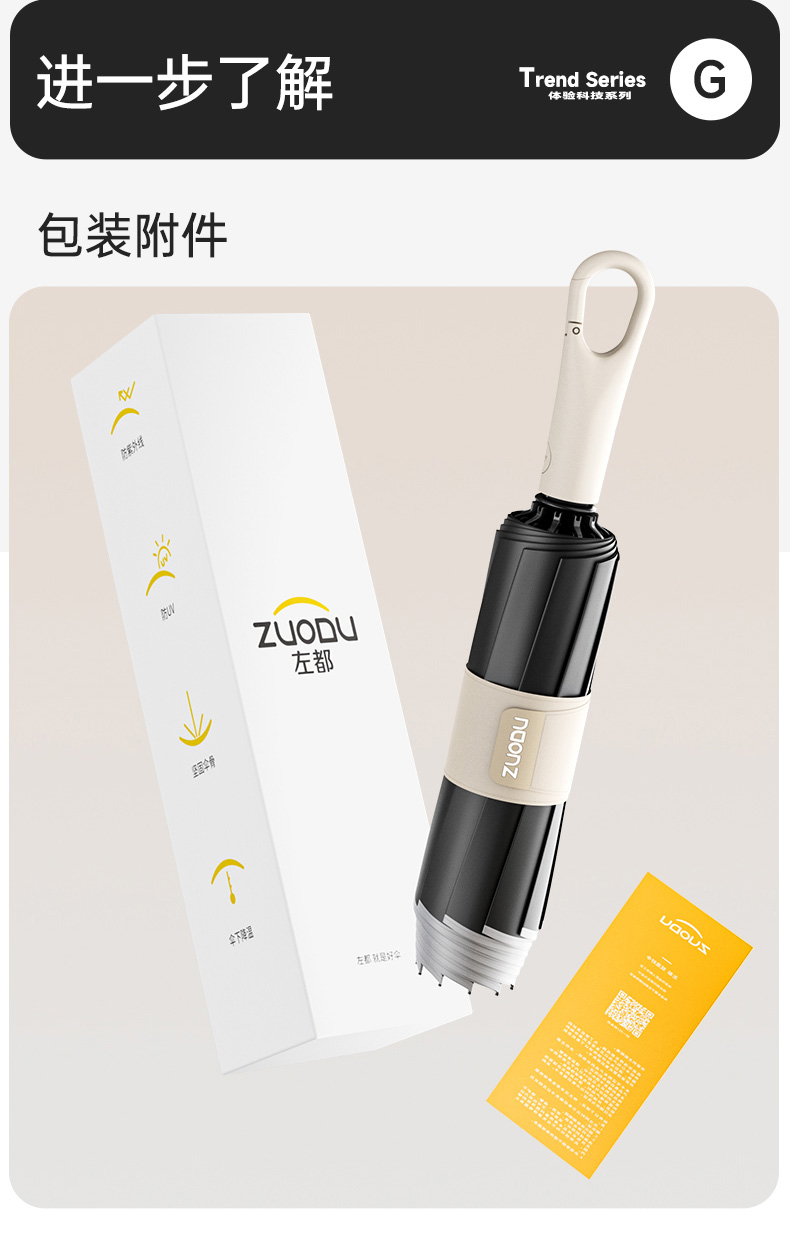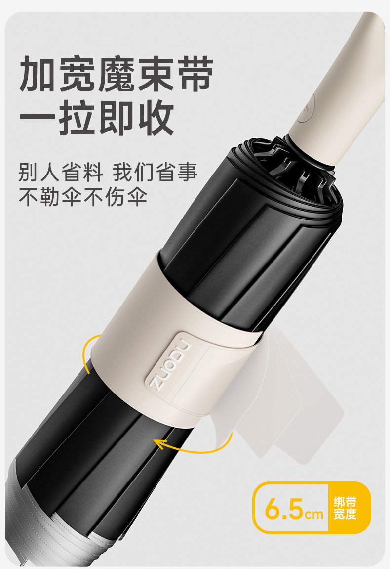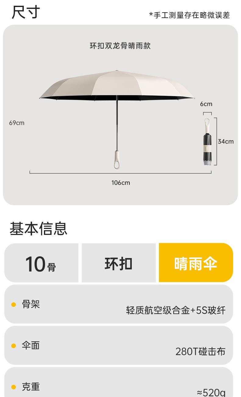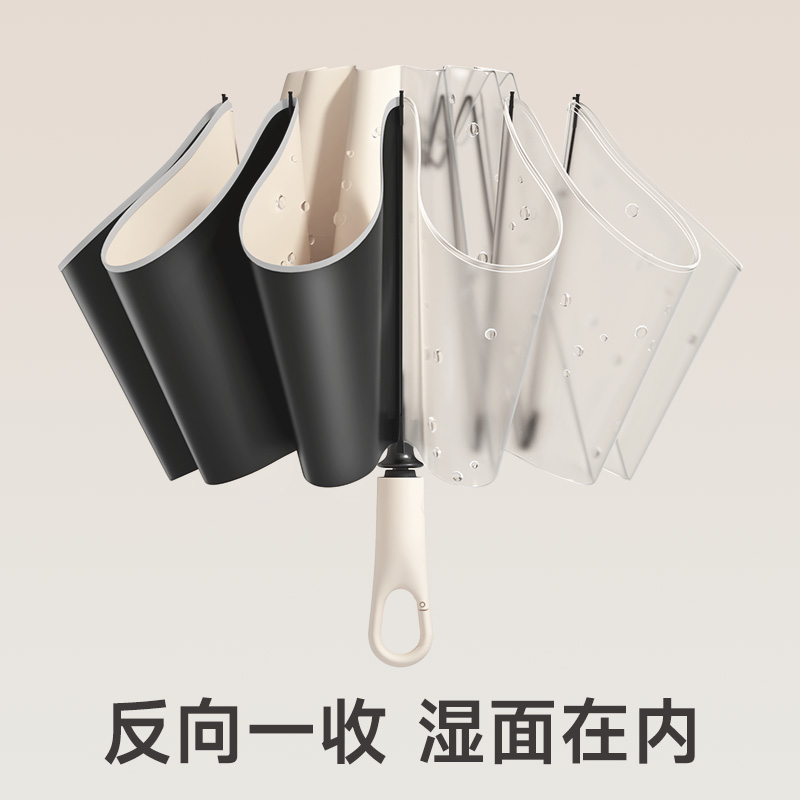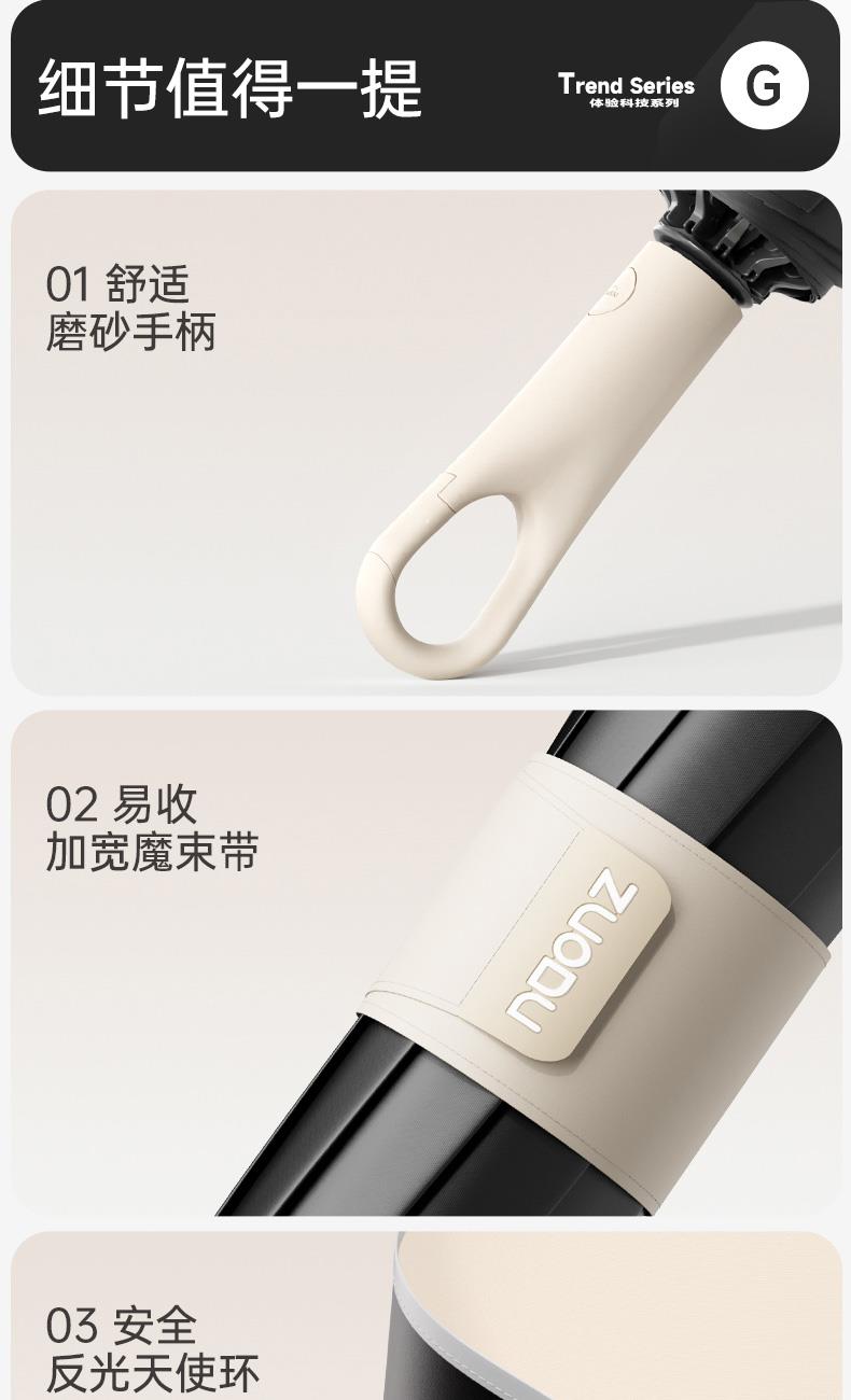 左都ZD230-小环扣反向双龙骨黑架子【黑胶】防晒自动伞