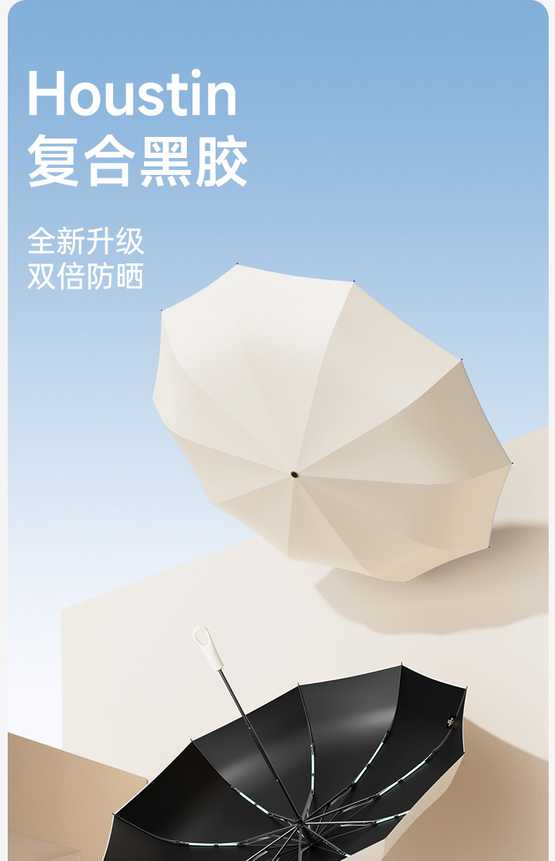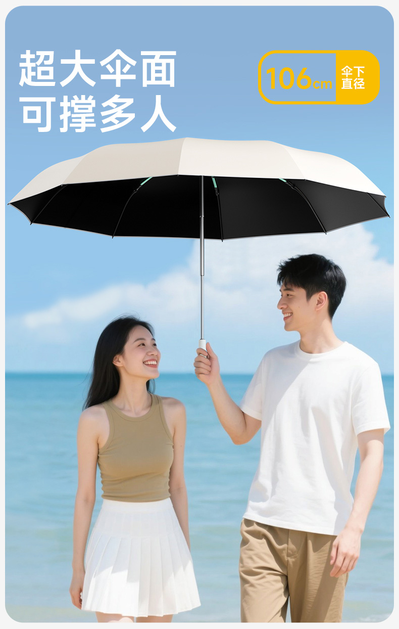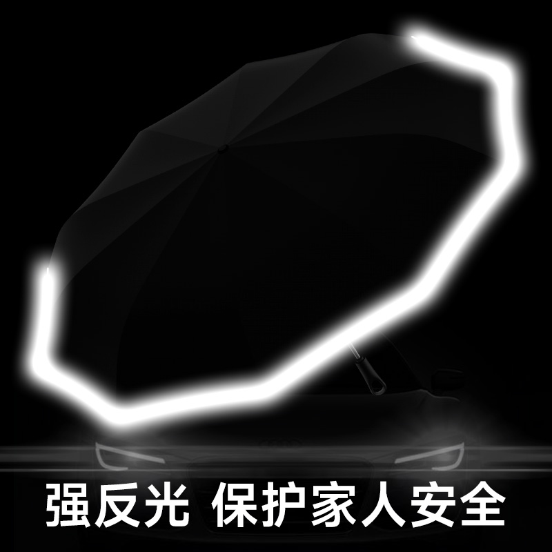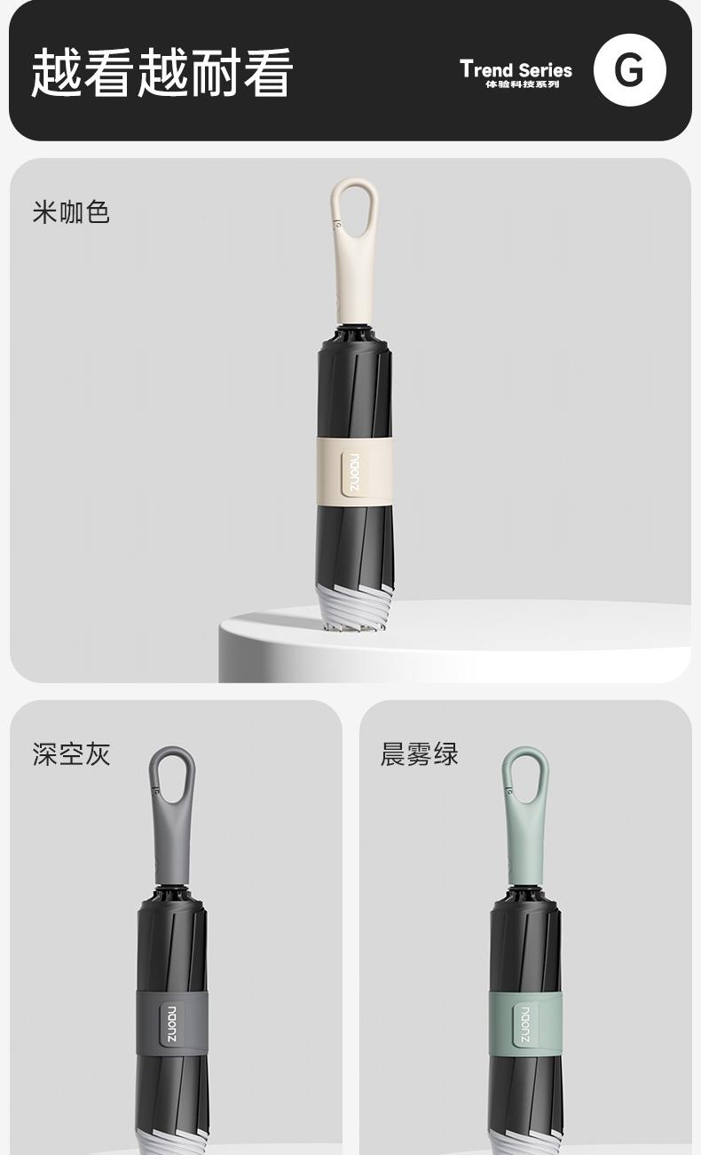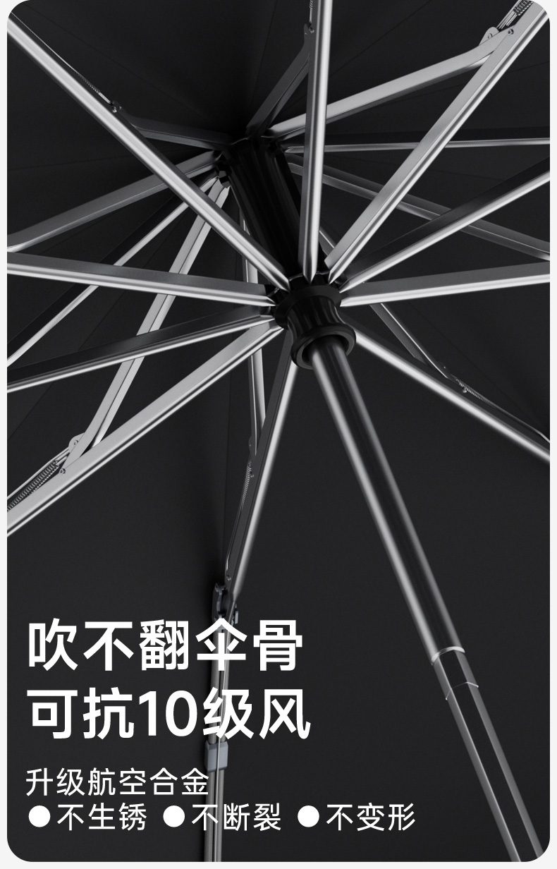 左都ZD230-小环扣反向双龙骨黑架子【黑胶】防晒自动伞