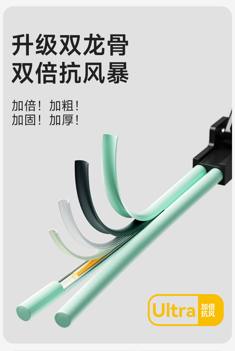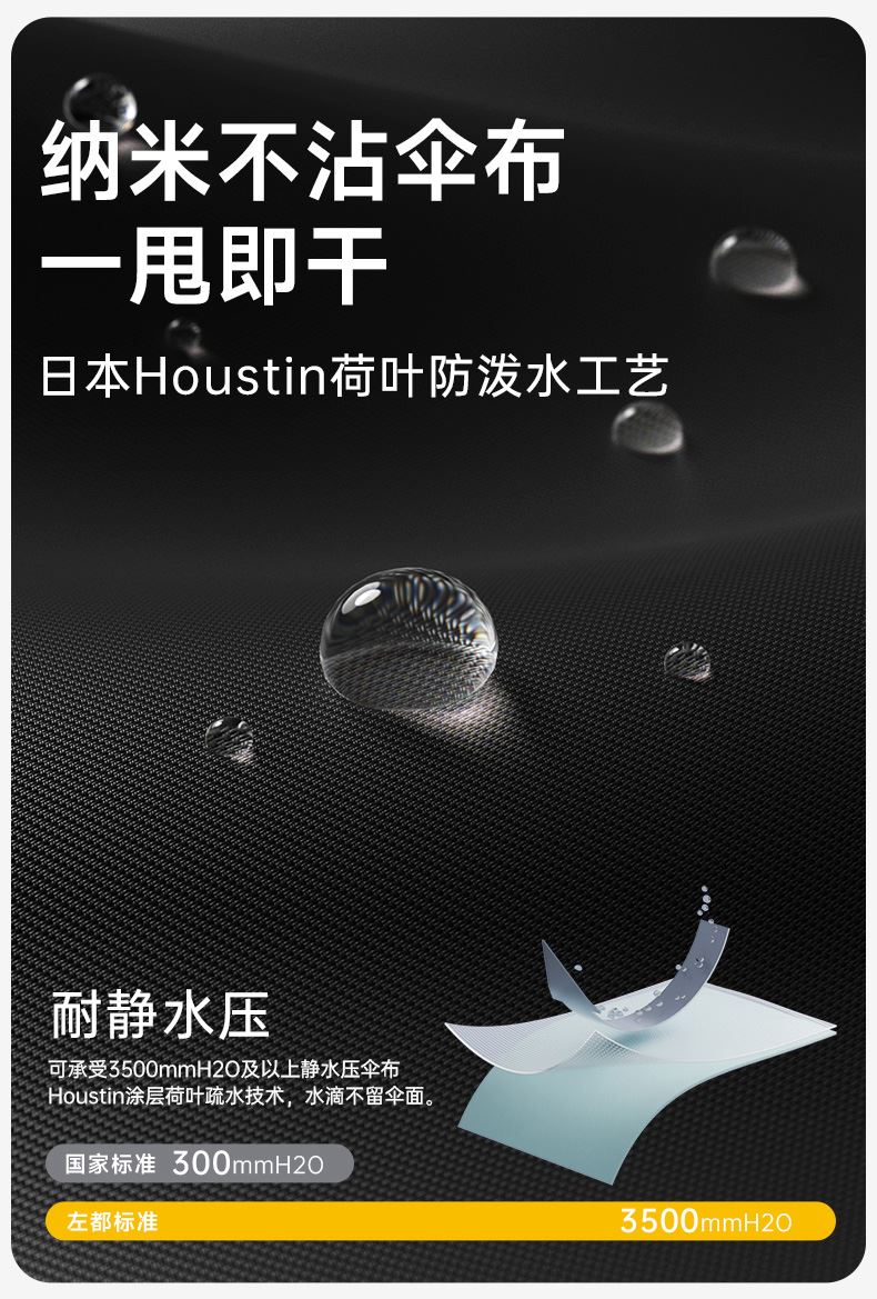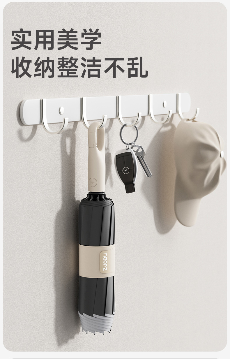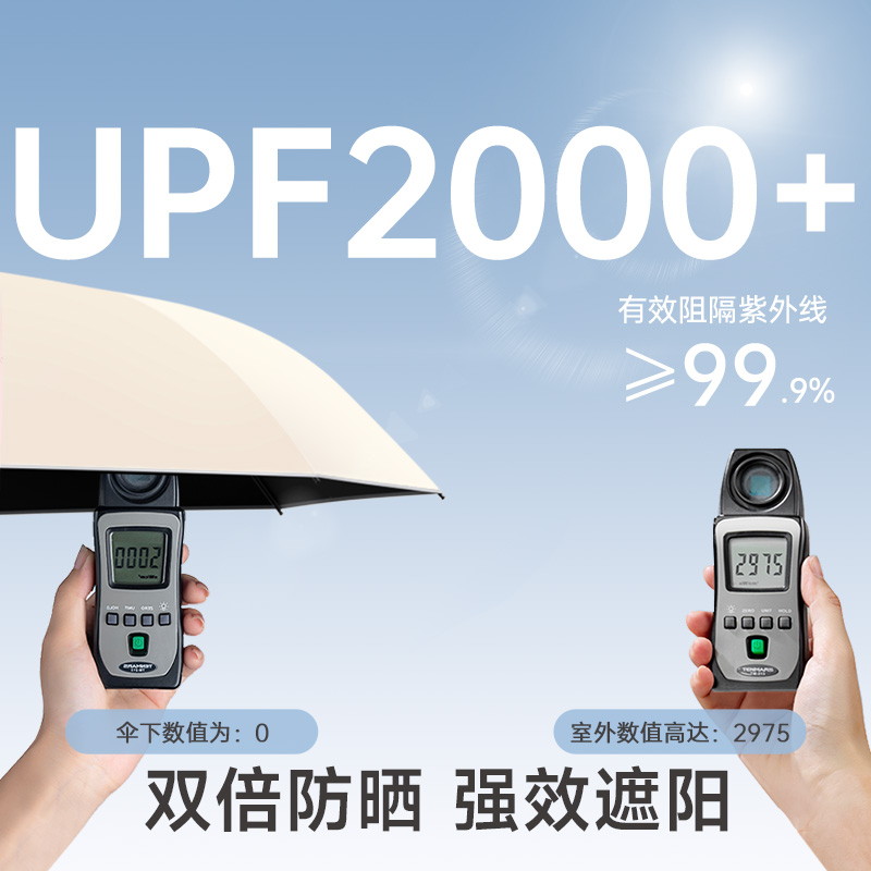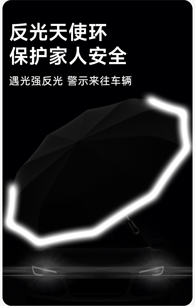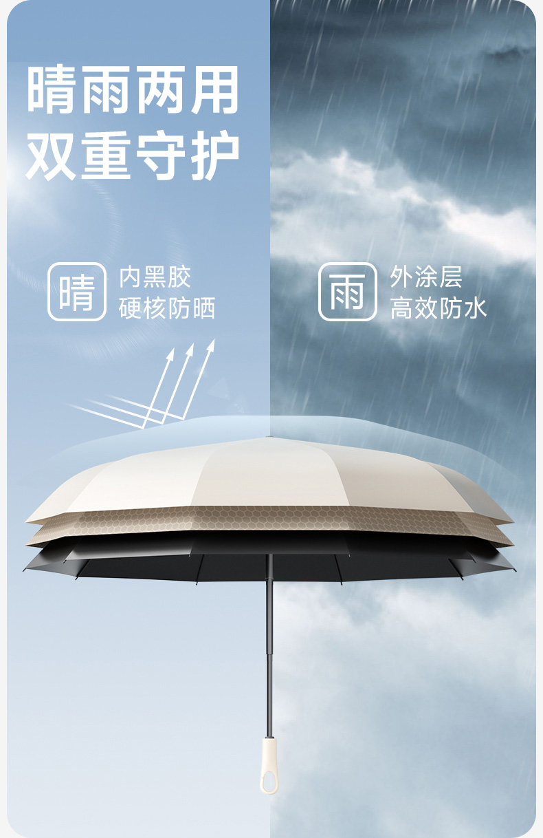左都ZD230-小环扣反向双龙骨黑架子【黑胶】防晒自动伞