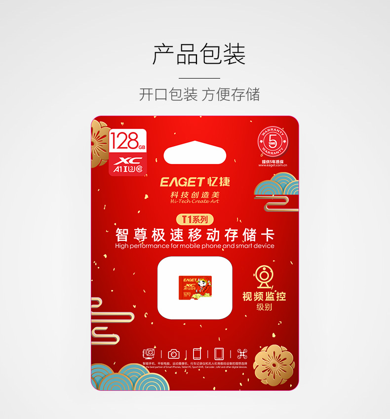 (EAGET)忆捷手机监控摄像高速行车记录仪TF卡128GB