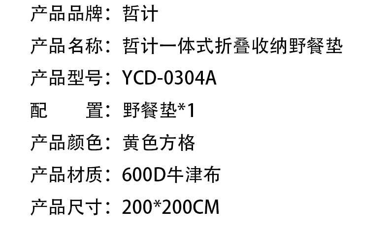哲计一体式折叠收纳野餐垫YCD-0304A(黄色方格)