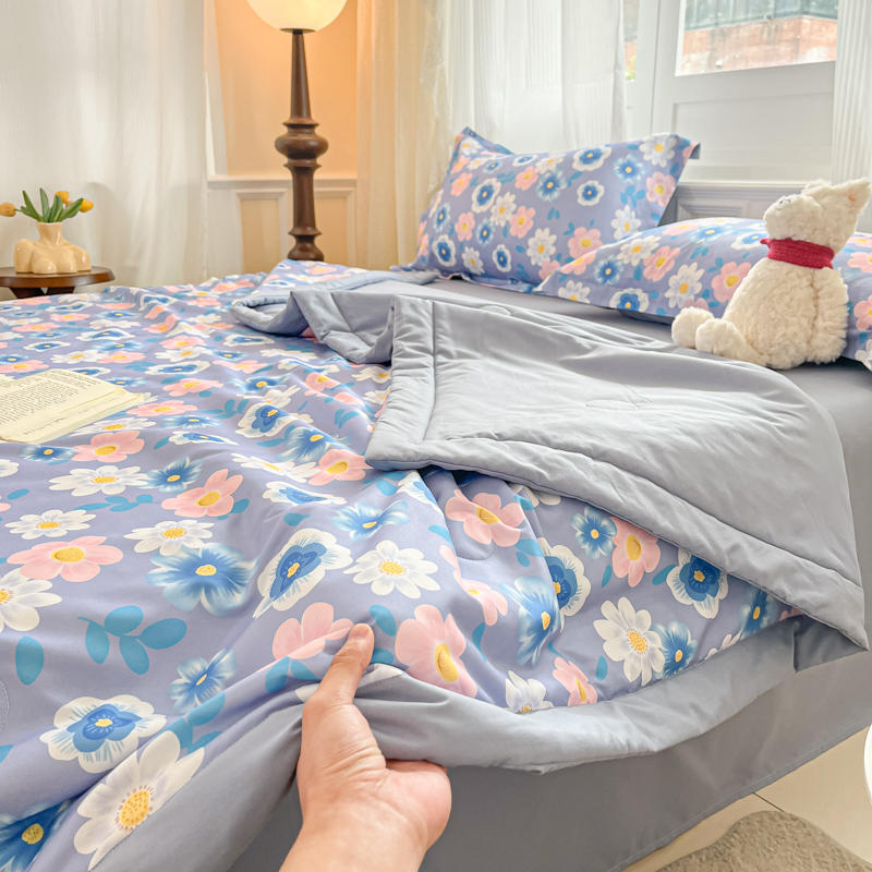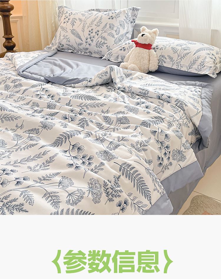 规格:200*230cm 面料:泡泡纱(聚酯纤维) 填充:羽丝棉(聚酯纤维) 重量:1.2kg